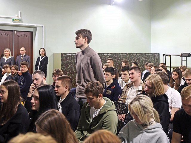 В ходе встречи Илья рассказал не только о мужестве и героизме своих товарищей, но и о быте, взаимовыручке на передовой, боевом духе, настроениях среди участников СВО, чувствах, которые испытывают воины, получая письма с гражданки из разных уголков страны. Студенты активно включились в диалог, задавали интересующие их вопросы, на которые участник СВО охотно отвечал. Ребят интересовало буквально всё, начиная от экипировки, устройстве быта, эмоционального состояния наших бойцов.