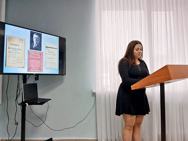 Доцент кафедры родного языка и литературы С. Н. Маскаева представила уникальные работы М. Е. Евсевьева в области лингвистики и этнографии.