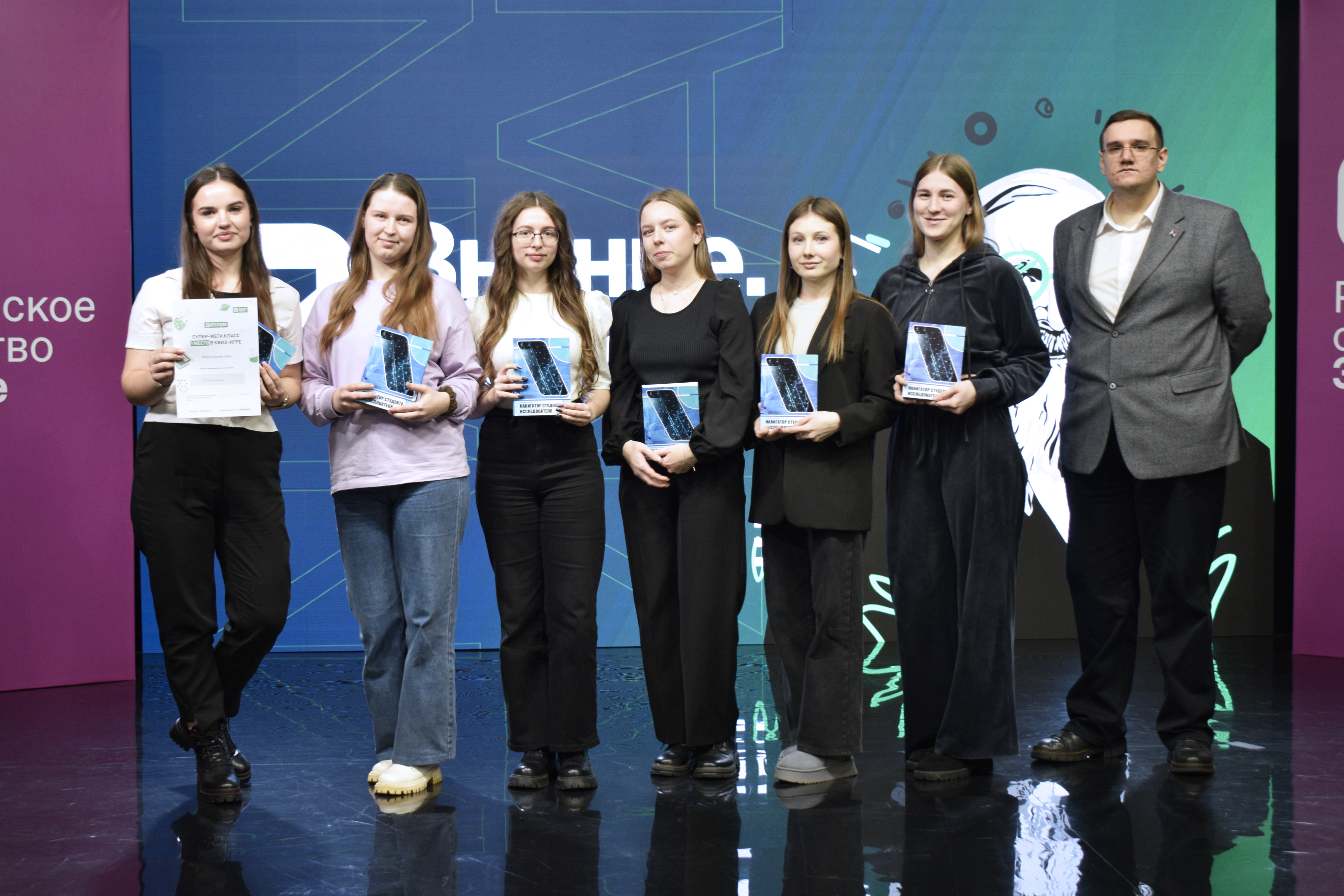На площадке Российского общества «Знание» студенты приняли участие в квиз-викторине «Наука среди нас». Квиз включил в себя 5 раундов по различным научным сферам. Студенты с пользой провели свое время и проверили свои знания в ходе игры. По итогам подсчета голосов, призовые места заняли команды следующих факультетов: