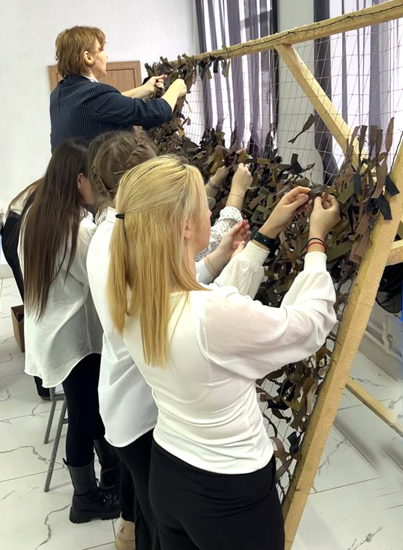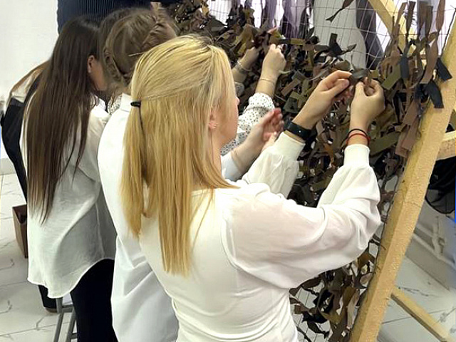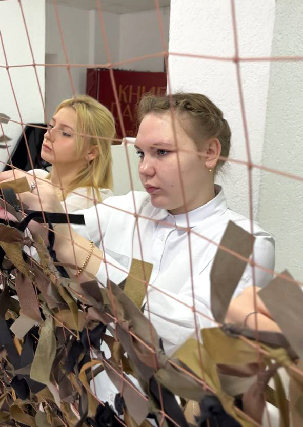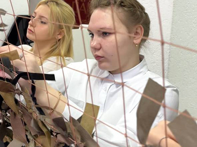 Кроме того, студенты принимают участие в создании маскировочных сетей. Эта работа требует внимания и аккуратности, но наши ребята с удовольствием вкладывают силы и время, осознавая важность своей миссии. Каждый узел, каждая нить — результат кропотливого труда, который помогает защитить тех, кто стоит на страже нашей Родины.