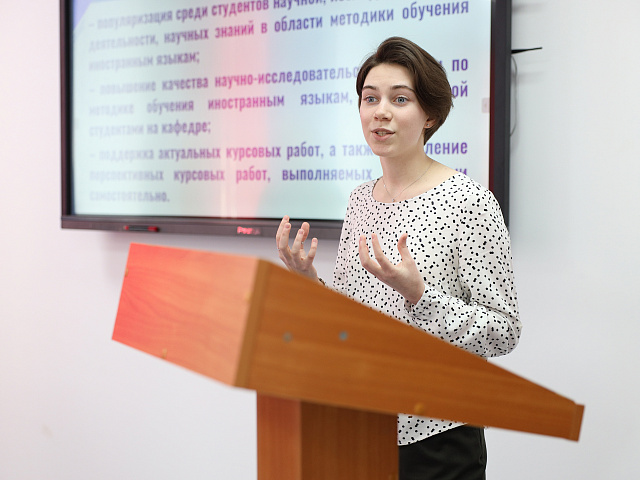 Среди наиболее ярких событий стоит отметить мастер-класс «Подготовка конкурсной работы по методике преподавания иностранных языков». Модератором мероприятия выступила Сергеева Наталья Сергеевна, студентка 3 курса факультета иностранных языков, председатель студенческого научного общества факультета. В рамках мастер-класса участники узнали об особенностях подготовки успешной конкурсной заявки, ее структуре, а также о критериях оценки работ.