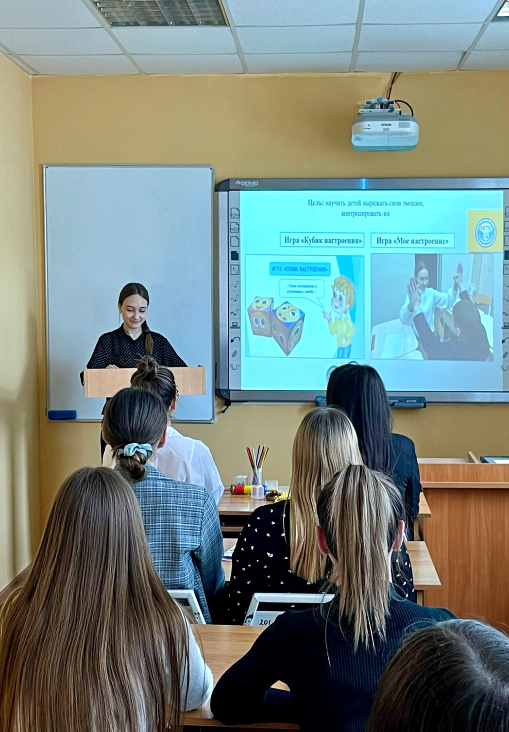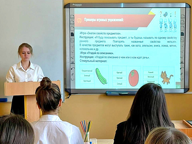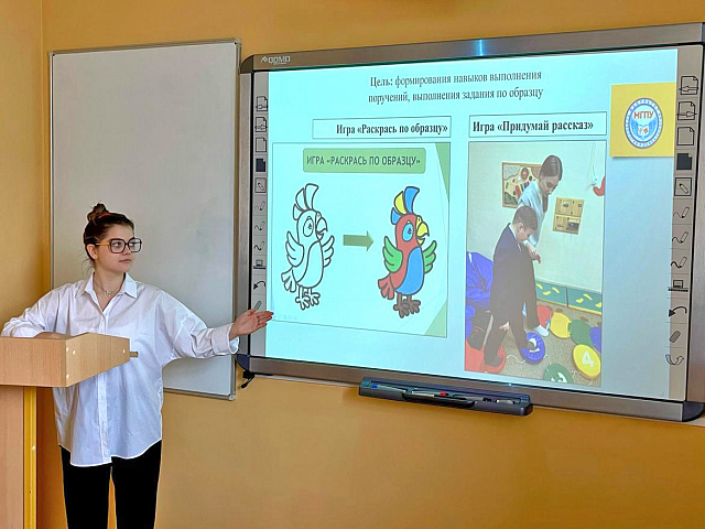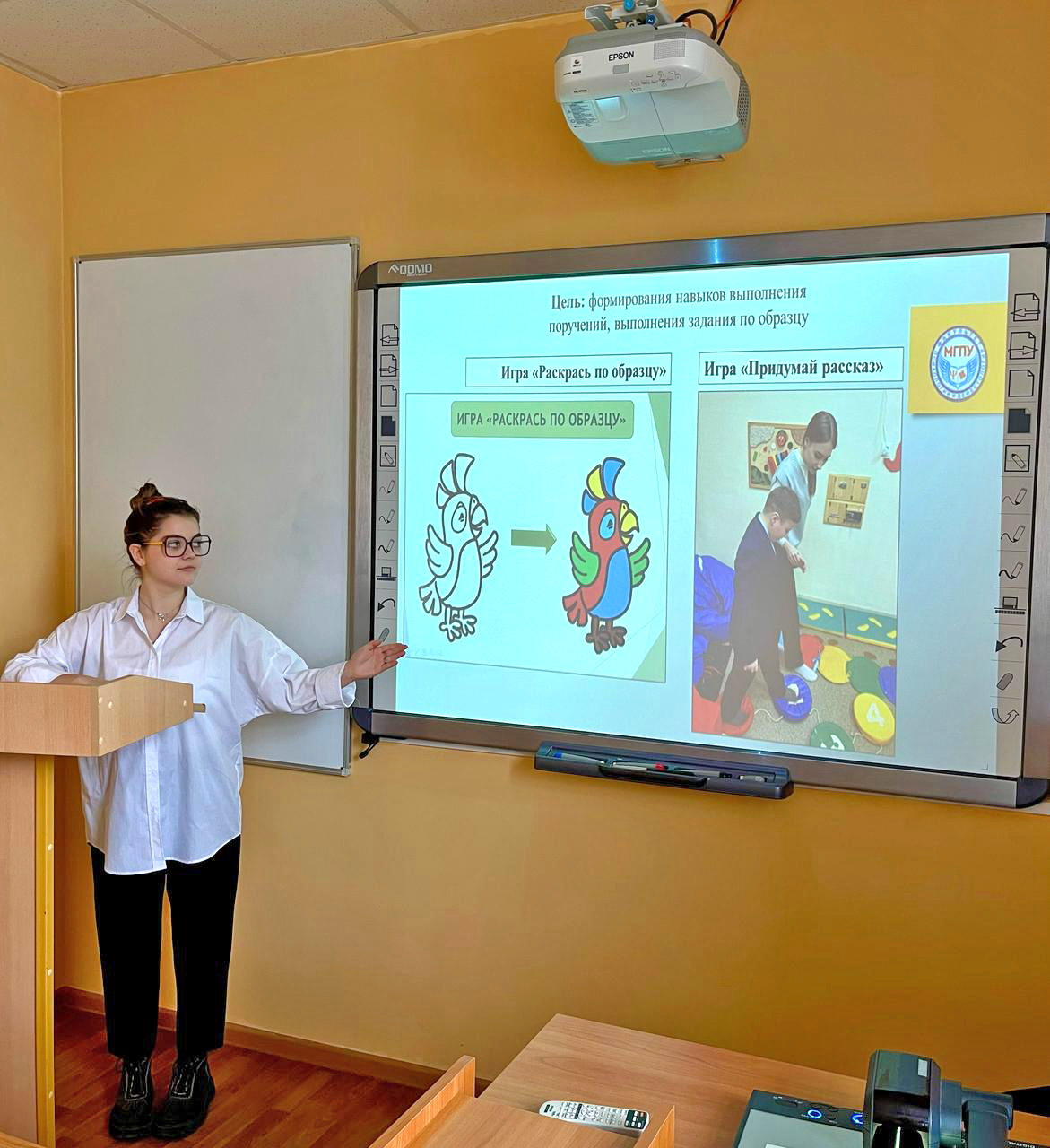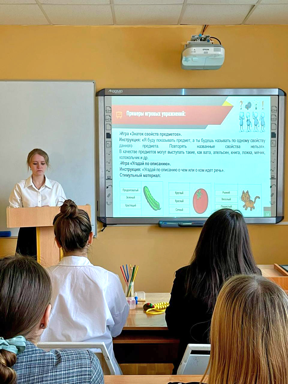 Познавательным и полезным для практико-ориентированной деятельности было выступление Трякиной Анастасии и Филяевой Ксении, которые поделились идеями повышения эффективности формирования познавательных и мыслительных процессов у детей с особыми образовательными потребностями. Будущие педагоги-психологи инклюзивного образования продемонстрировали возможности применения интерактивных игр, заданий на развитие креативного мышления, методов сенсорной интеграции, а также использования мультимедиа ресурсов.