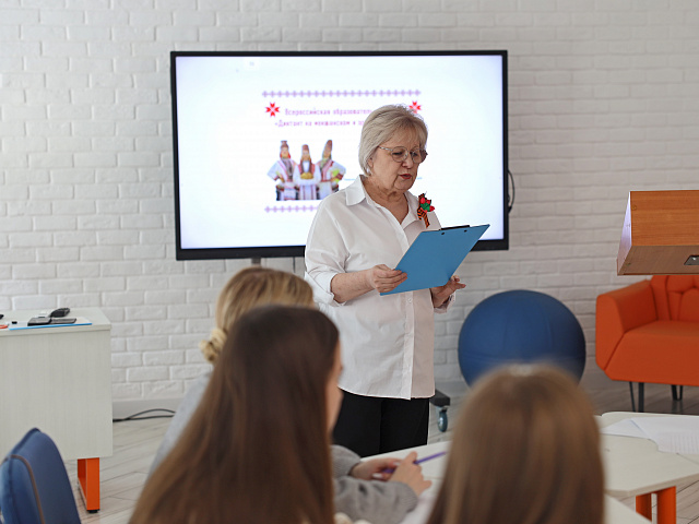 - Проведение акции на площадке вуза - добрая традиция, направленная на популяризацию и сохранение родных языков и культуры Мордовии. Диктант позволяет проверить и укрепить свои знания в грамматике и стилистике мокшанского и эрзянского языков. В мордовском педагогическом университете в этом направлении реализуется множество проектов. Например, «Школа мордовских языков», в рамках которой студенты проводят онлайн-занятия, организуют викторины и тематические квесты в школах республики, - отмечает заведующий кафедрой родного языка и литературы МГПУ им. М. Е. Евсевьева, доктор филологических наук, профессор Ольга Налдеева, - Подчеркну особую ценность олимпиад и диктанта на родных языках: именно в таких форматах талантливые знатоки мокшанского и эрзянского языков демонстрируют свои знания и лингвистические способности, улучшают свои компетенции.