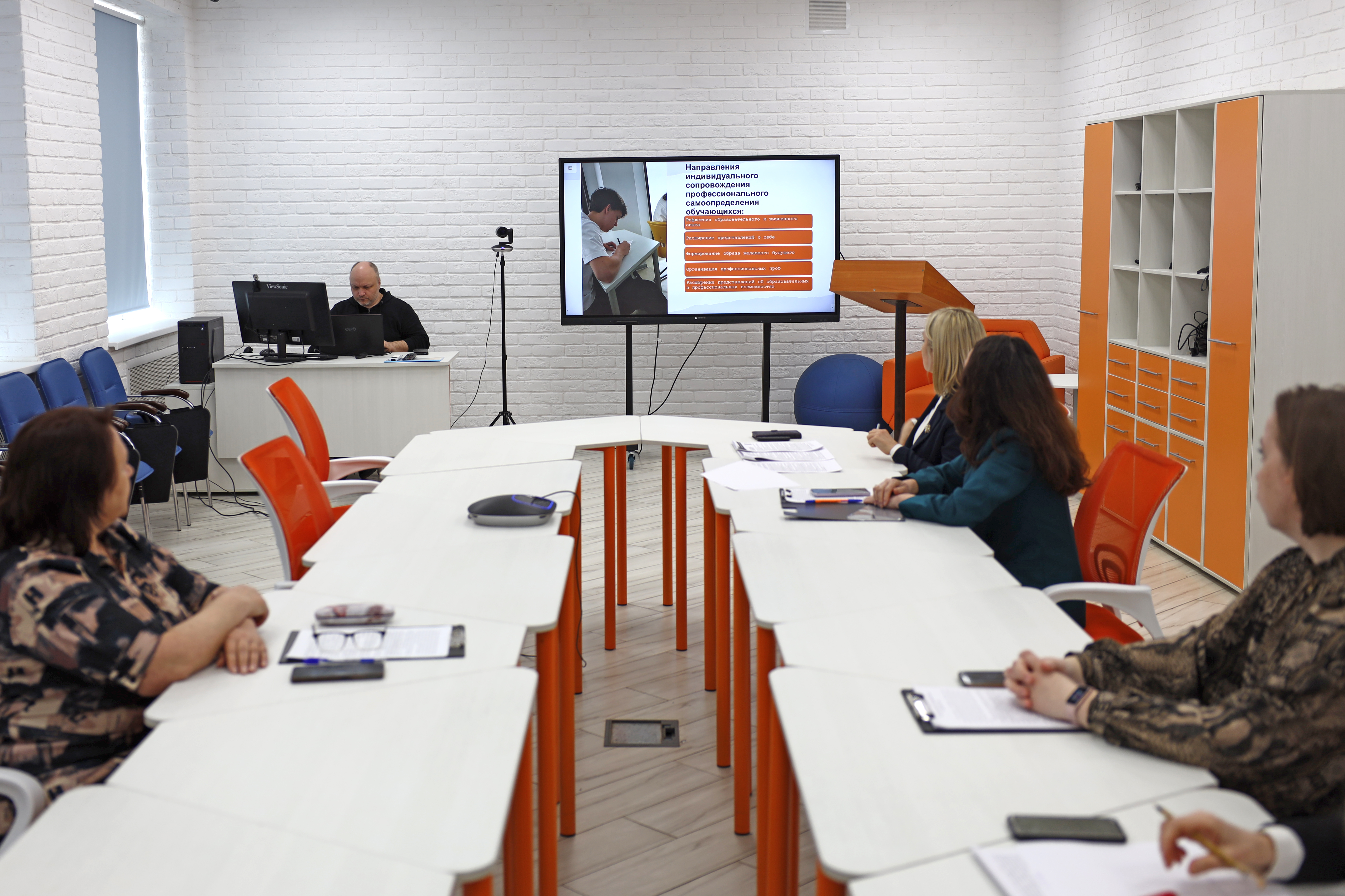 В ходе дискуссии был рассмотрен опыт работы базовых кафедр МГПУ им. М. Е. Евсевьева по организации и сопровождению профессионального самоопределения детей и молодежи, раскрыты особенности взаимодействия с образовательными организациями региона в рамках профессиональной ориентации, представлены инновационные форматы сетевого взаимодействия с организациями – базовыми партнерами, обсуждены возможности инновационных структур вуза (технопарк универсальных педагогических компетенций, педагогический кванториум и пр.) в реализации профориентационного сопровождения обучающихся в формате сетевого взаимодействия.