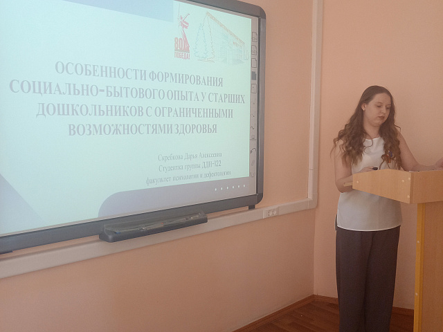 6) «Особенности формирования социально-бытового опыта у старших дошкольников с ограниченными возможностями здоровья» Скребковой Дарьи Алексеевны, студентки Мордовского государственного педагогического университета имени М. Е. Евсевьева.