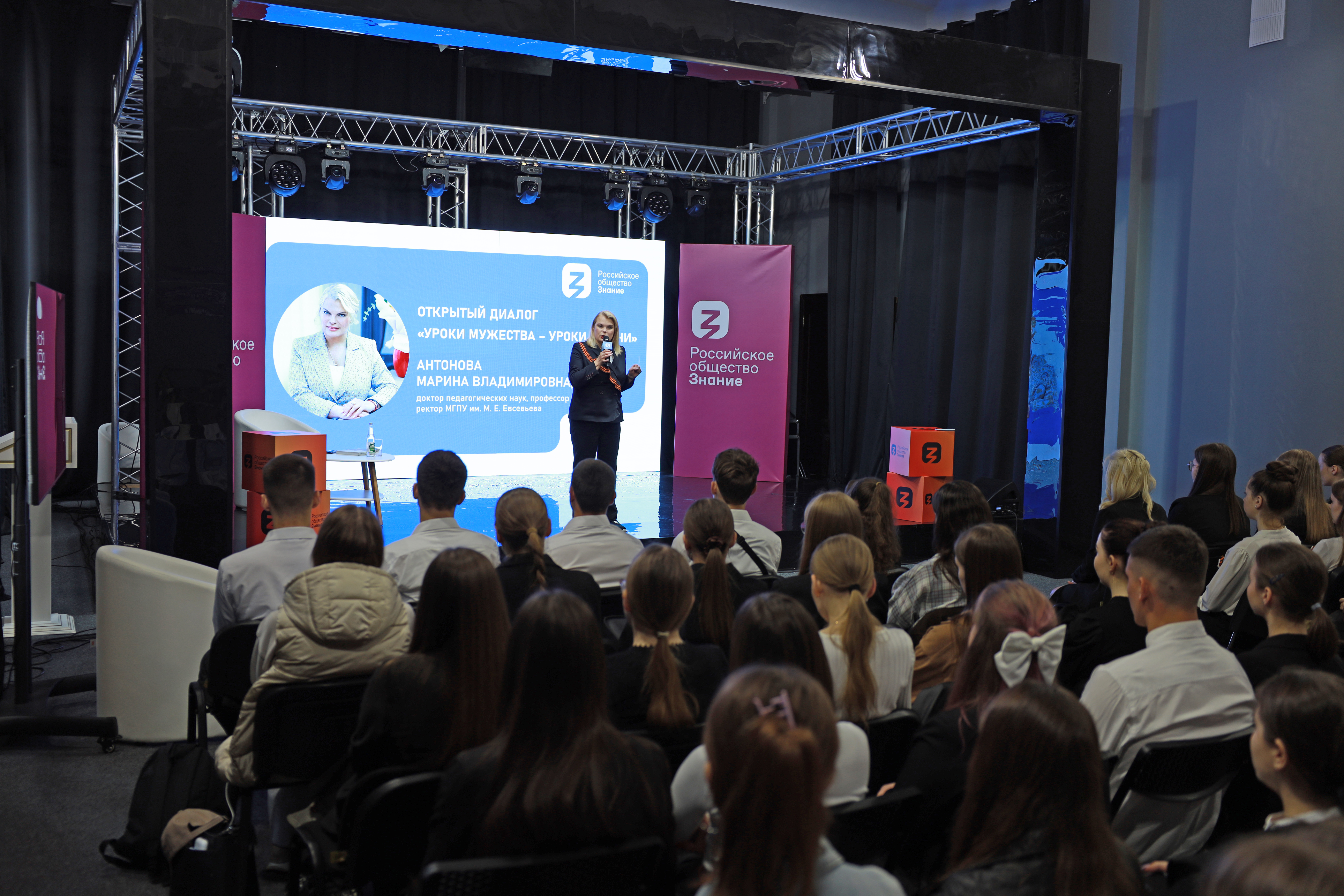 В Мордовском государственном педагогическом университете состоялась лекция доктора педагогических наук, профессора РАО, ректора, Председателя регионального отделения Российского общества «Знание» в Республике Мордовия Марины Владимировны Антоновой, посвященная теме «Уроки мужества – уроки жизни». Мероприятие прошло 13 мая в Доме знаний и собрало студенческое сообщество вуза – будущих учителей, на плечи которых ляжет ответственность за воспитание новых поколений россиян.