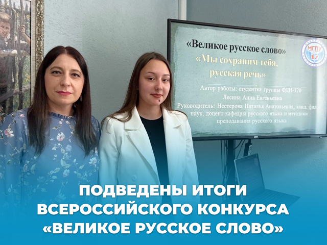 Подведены итоги яркого и насыщенного конкурса научно-исследовательских, методических и творческих работ «Великое русское слово», организованного кафедрой русского языка и методики преподавания русского языка и базовой кафедрой филологического факультета МГПУ им. М. Е. Евсевьева.