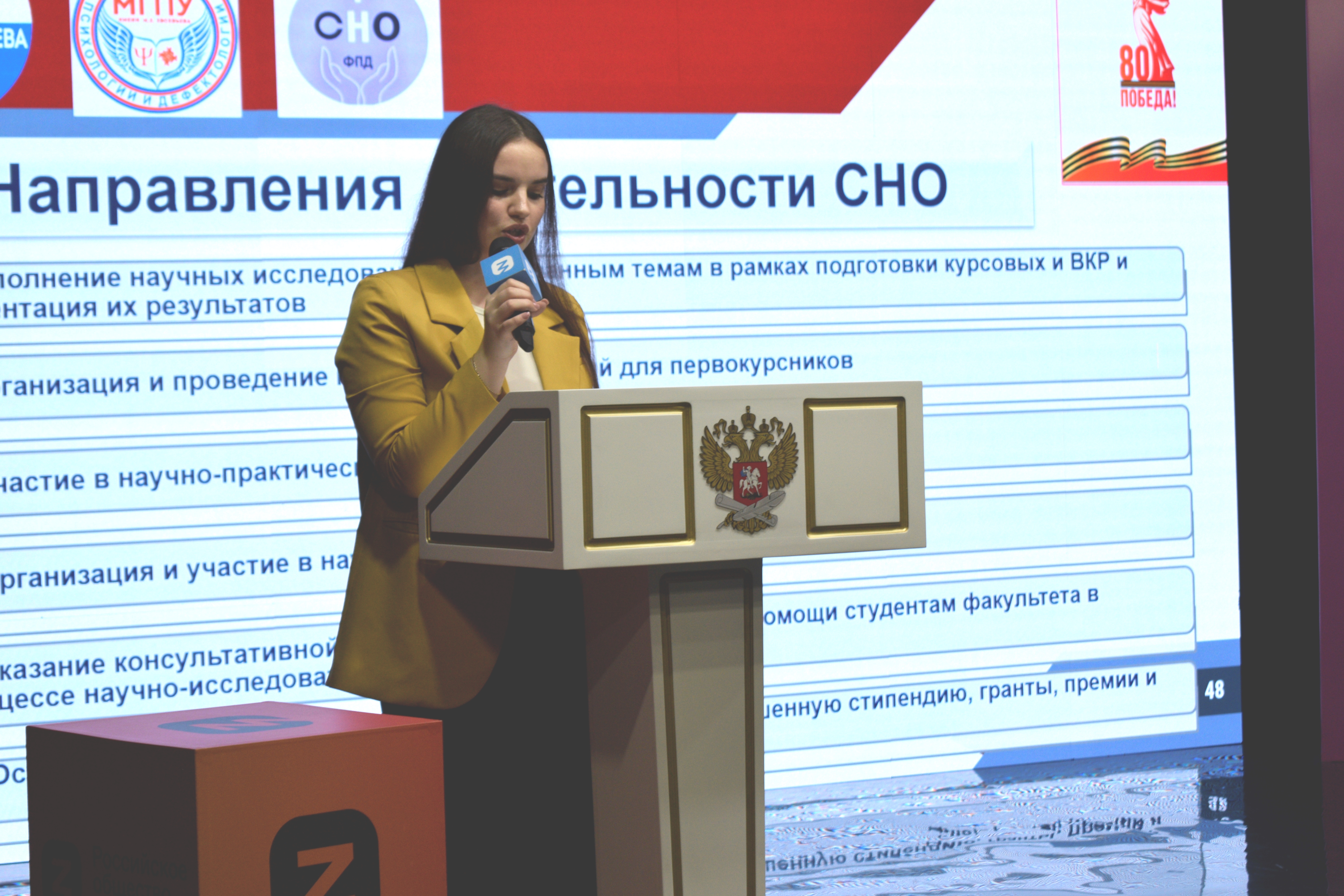 Юлия Андреевна Демяшкина, специалист управления научной и инновационной деятельности, презентуя проект «Траектория студента-исследователя в педагогическом вузе», победивший в конкурсе на предоставление субсидий из Федерального бюджета на поддержку студенческих научных сообществ, проводимом Министерством науки и высшего образования Российской Федерации, представила мероприятия, планируемые на предстоящий учебный год.