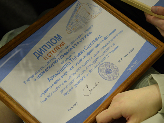 С приветственным словом к участникам обратилась Татьяна Ивановна Шукшина, доктор педагогических наук, профессор, проректор по научной работе. Она отметила значимость проводимой студенческим научным обществом работы как для вуза, так и для региона. Из рук проректора победители и призеры Открытых международных студенческих Интернет-олимпиад и Всероссийского конкурса научно-исследовательских работ студентов «Студенческие исследования в образовании» получили наградные дипломы и медали.