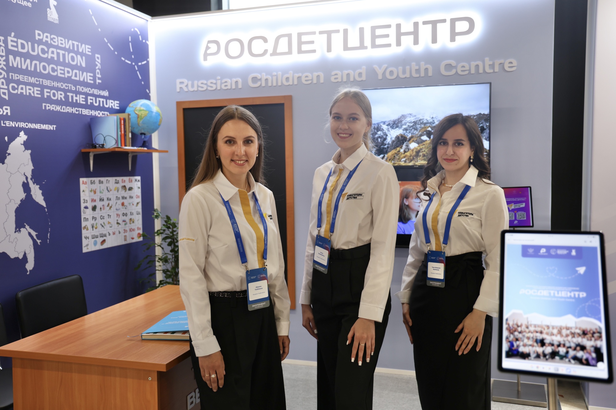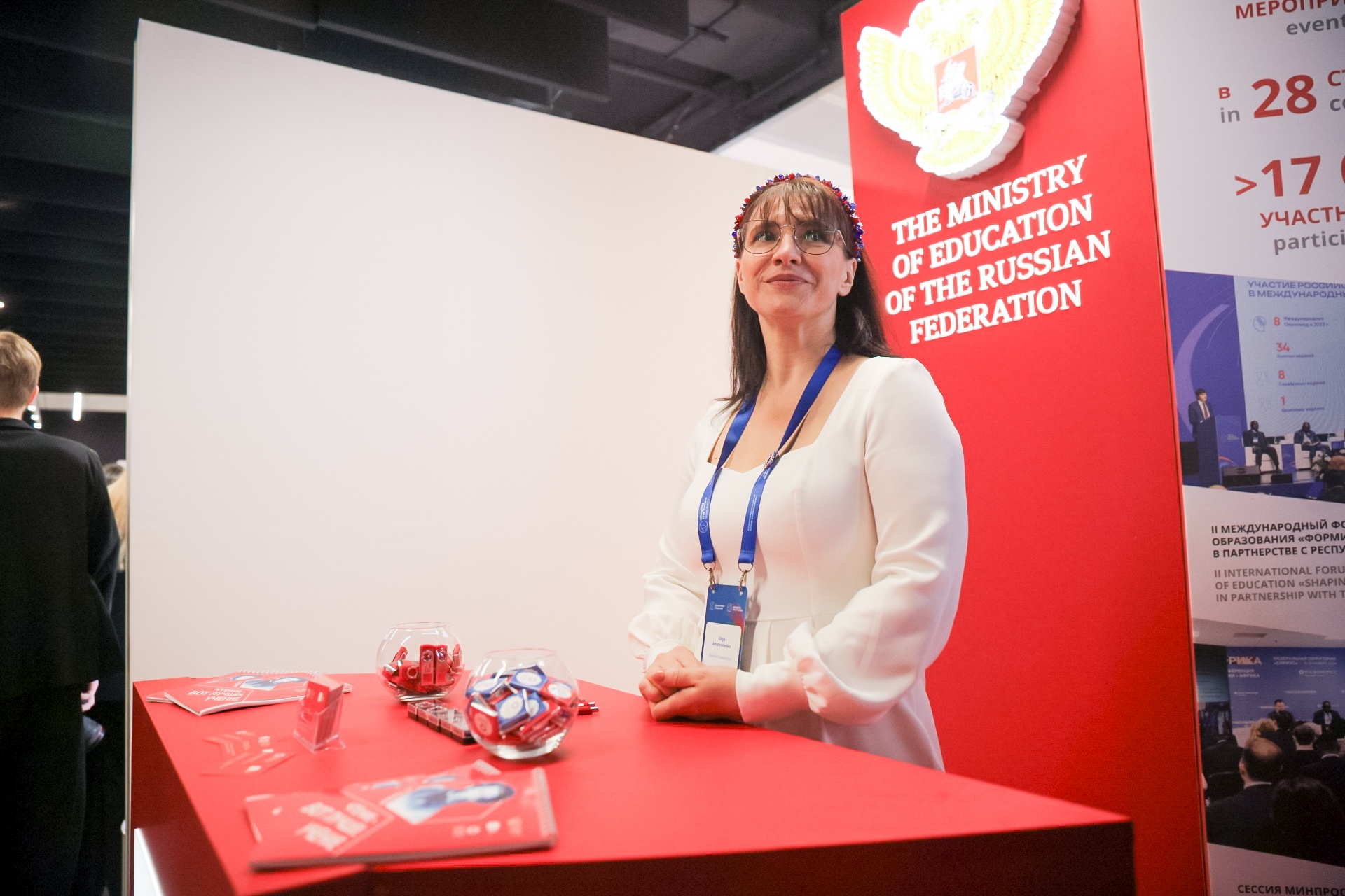О международной деятельности российского просвещения рассказывает стенд центров открытого образования на русском языке. Благодаря проекту, курируемому фондом «Моя история», к настоящему времени для жителей 62 стран по всему миру открыты более 60 центров, организованы 175 площадок, на которых доступны курсы открытого образования на русском языке и занятия по русскому языку. Стенд центров международного сотрудничества Минпросвещения России демонстрирует достижения масштабного проекта «Российский учитель за рубежом», который реализуется в более чем 30 странах. Также здесь приведены данные об основных показателях проекта, его реализации в инженерных и гуманитарных школах и организациях среднего профессионального образования.
