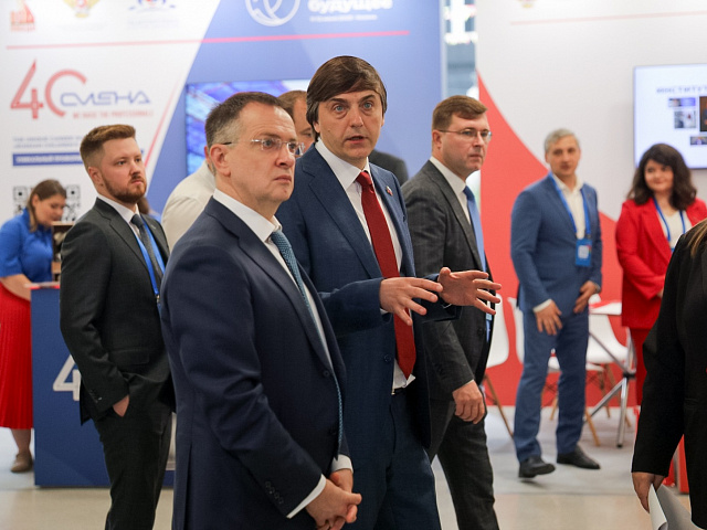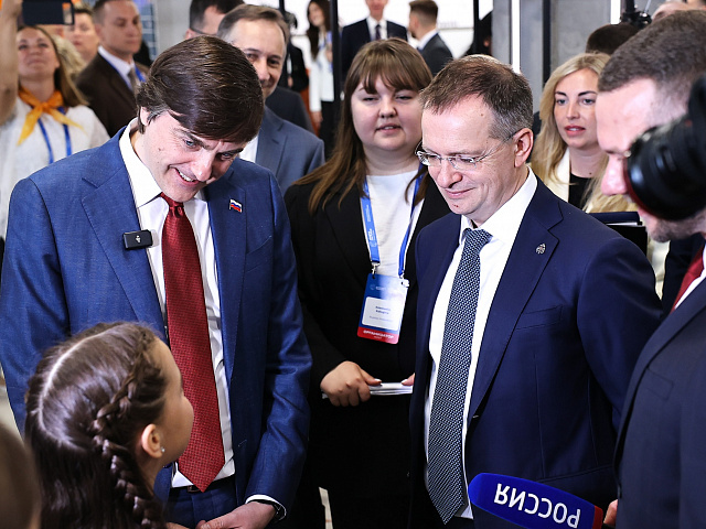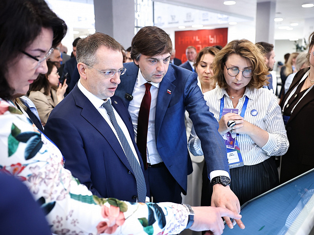 Источник: Минпросвещения РФ (https://edu.gov.ru/press/9991/vladimir-medinskiy-i-sergey-kravcov-osmotreli-vystavochnuyu-zonu-forum...)