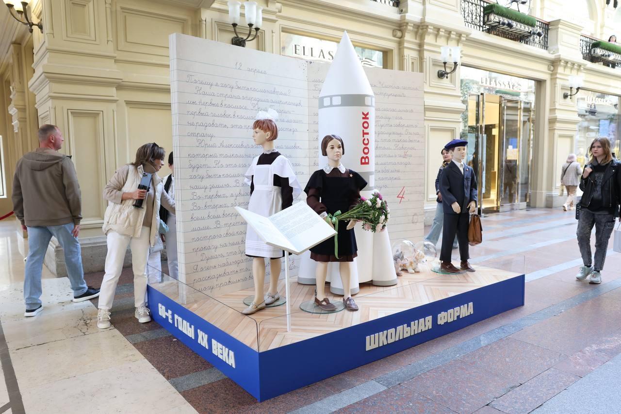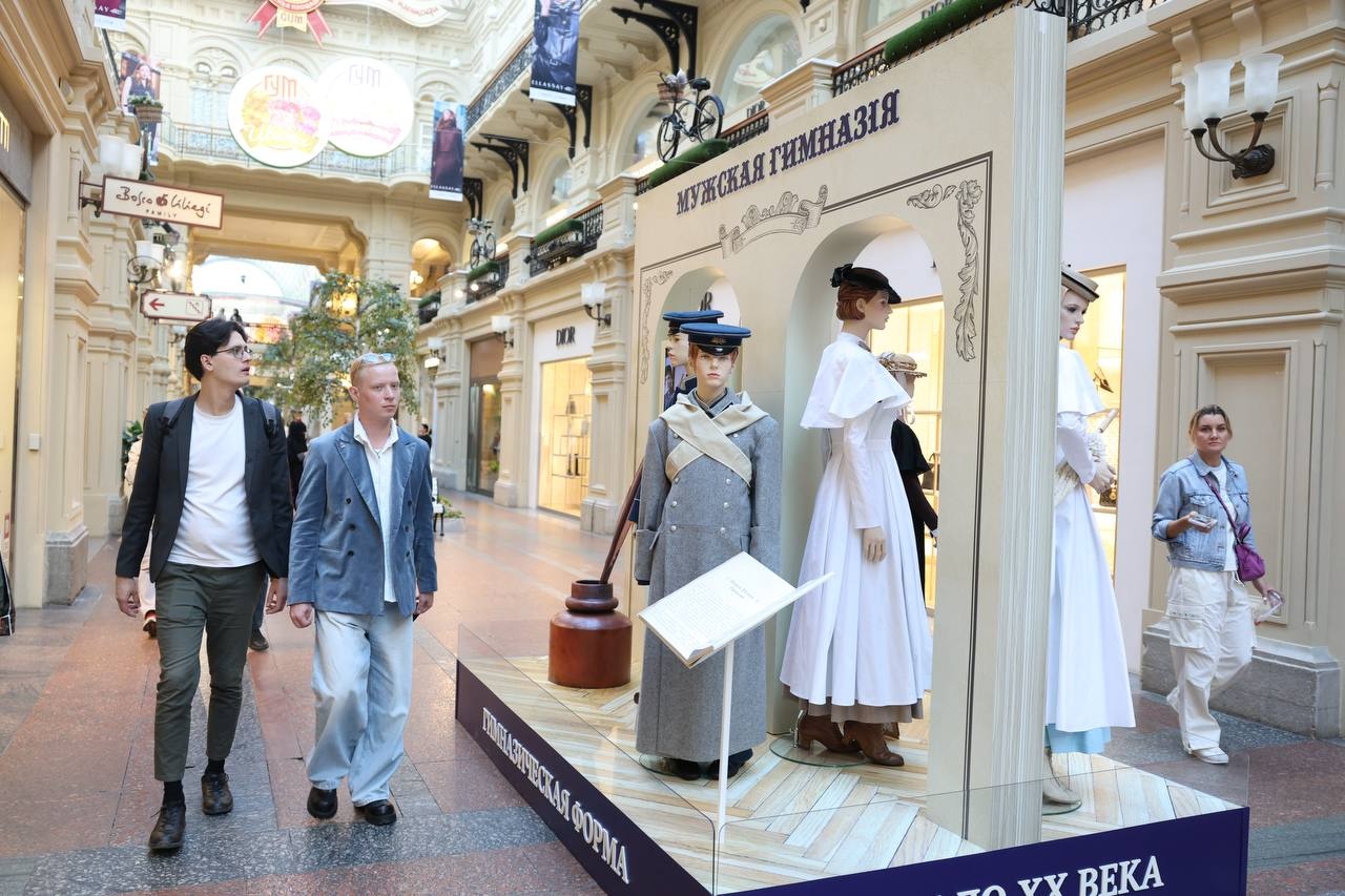В Москве в Государственном универсальном магазине 28 августа открылась выставка «История школьной формы 1900–2025». Стенды, размещенные на 1-й линии, посетил Министр просвещения РФ Сергей Кравцов.