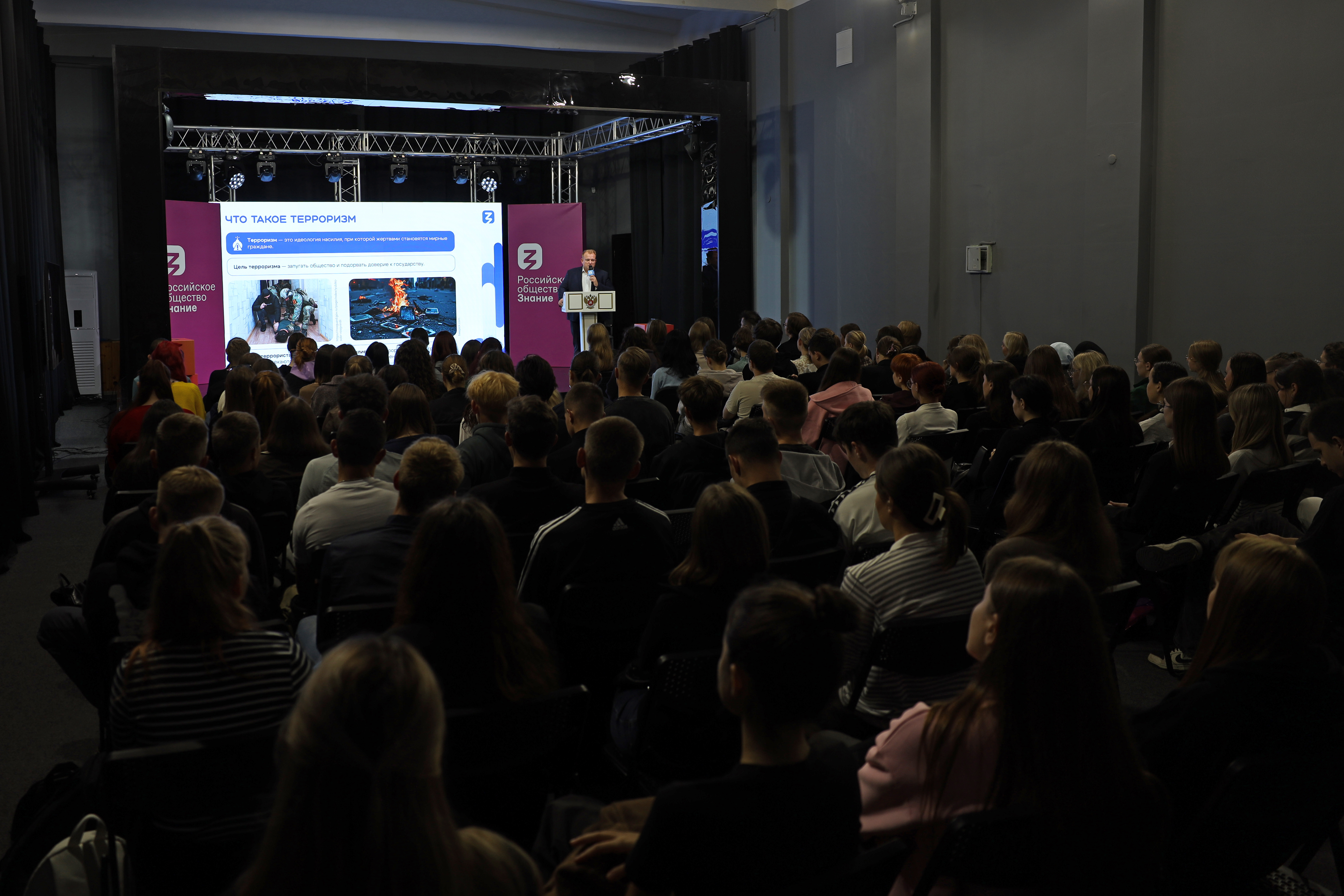 В начале лекции Евгений Николаевич подчеркнул: «Терроризм – это не стихийное бедствие, а идеология насилия. Ее цель – запугать общество, ослабить государство и, к сожалению, часто под прицелом оказываются молодые люди, чья доверчивость и эмоциональность становятся объектом для манипуляций».
