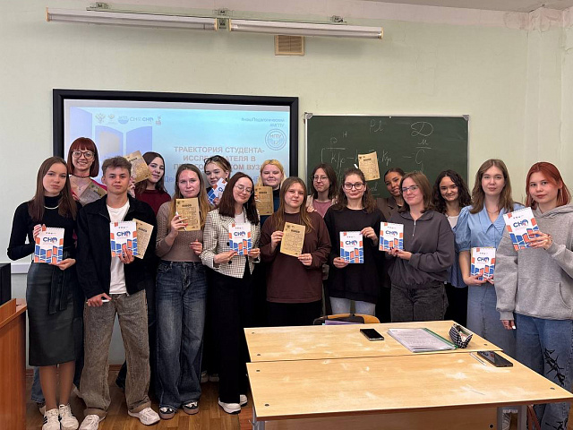 Лидеры СНО физико-математического факультета предложили ребятам интерактивы, которые объединяли науку и творчество: диалог-презентацию «Портфолио студента-исследователя», круглый стол с заведующими кафедр «Фокус на науку», интеллектуальную игру «Что? Где? Когда?» по физике и математический квиз «От Пифагора до Перельмана». Студенты смогли не только проверить знания и логическое мышление, но и узнать о перспективах участия в научных проектах и грантах. 65 первокурсников стали гостями адаптива.