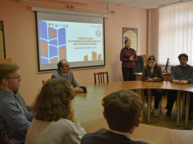 Члены СНО факультета истории и права предложили исследовательский адаптив «Путь в науку» для 56 первокурсников. Он включал четыре ключевых мероприятия, которые знакомили студентов с основами научной деятельности и помогали сформировать понимание науки как увлекательного и динамичного пути.