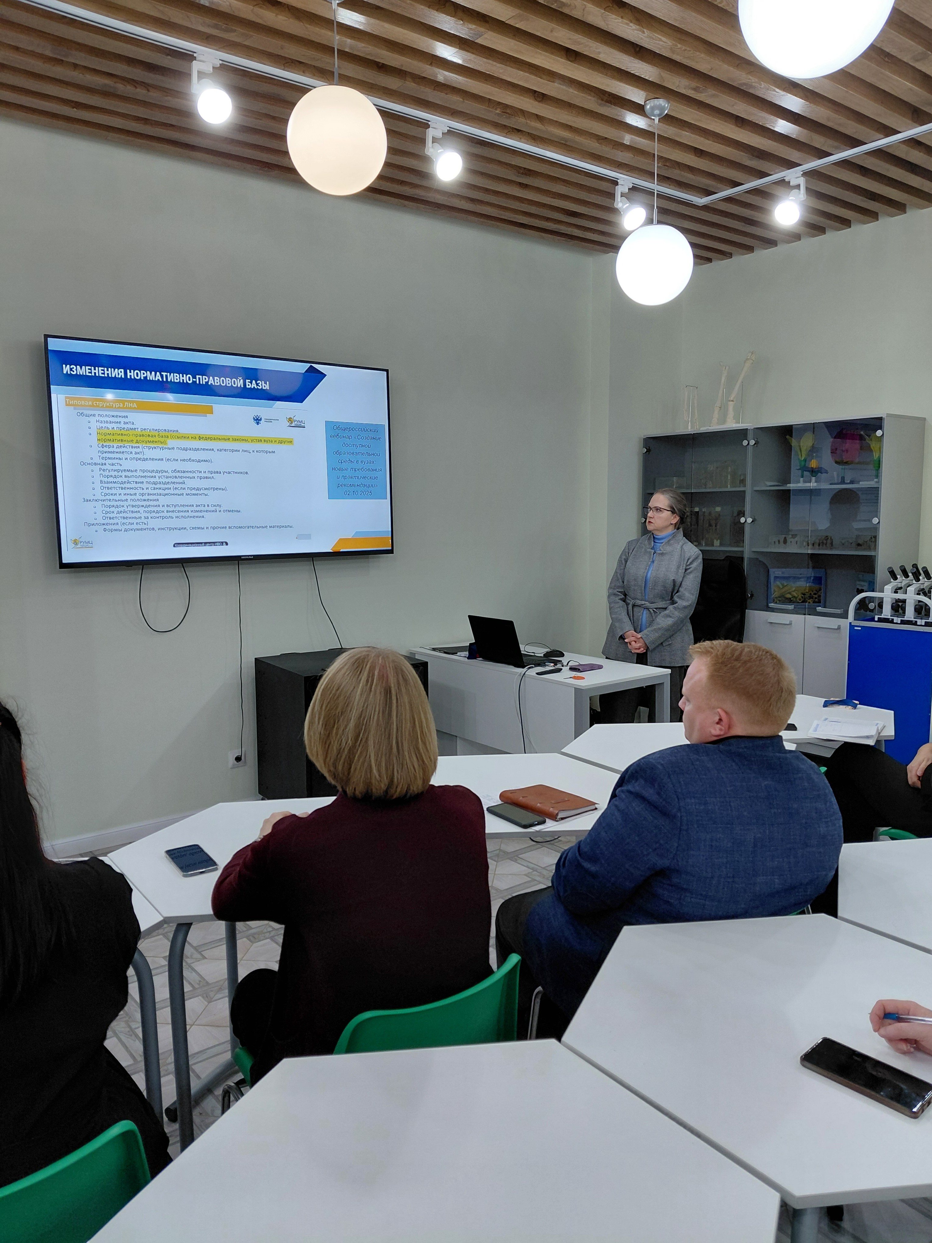 Ольга Валерьевна Бобкова охарактеризовала основные направления деятельности вуза в рамках Межведомственного комплексного плана, а также изменения Порядка обеспечения условий доступности для инвалидов объектов и предоставляемых услуг в сфере науки и высшего образования, обусловленные приказами Министерства Просвещения и Министерства образования и науки Российской Федерации, вступившими в силу с 1 сентября 2025 года.