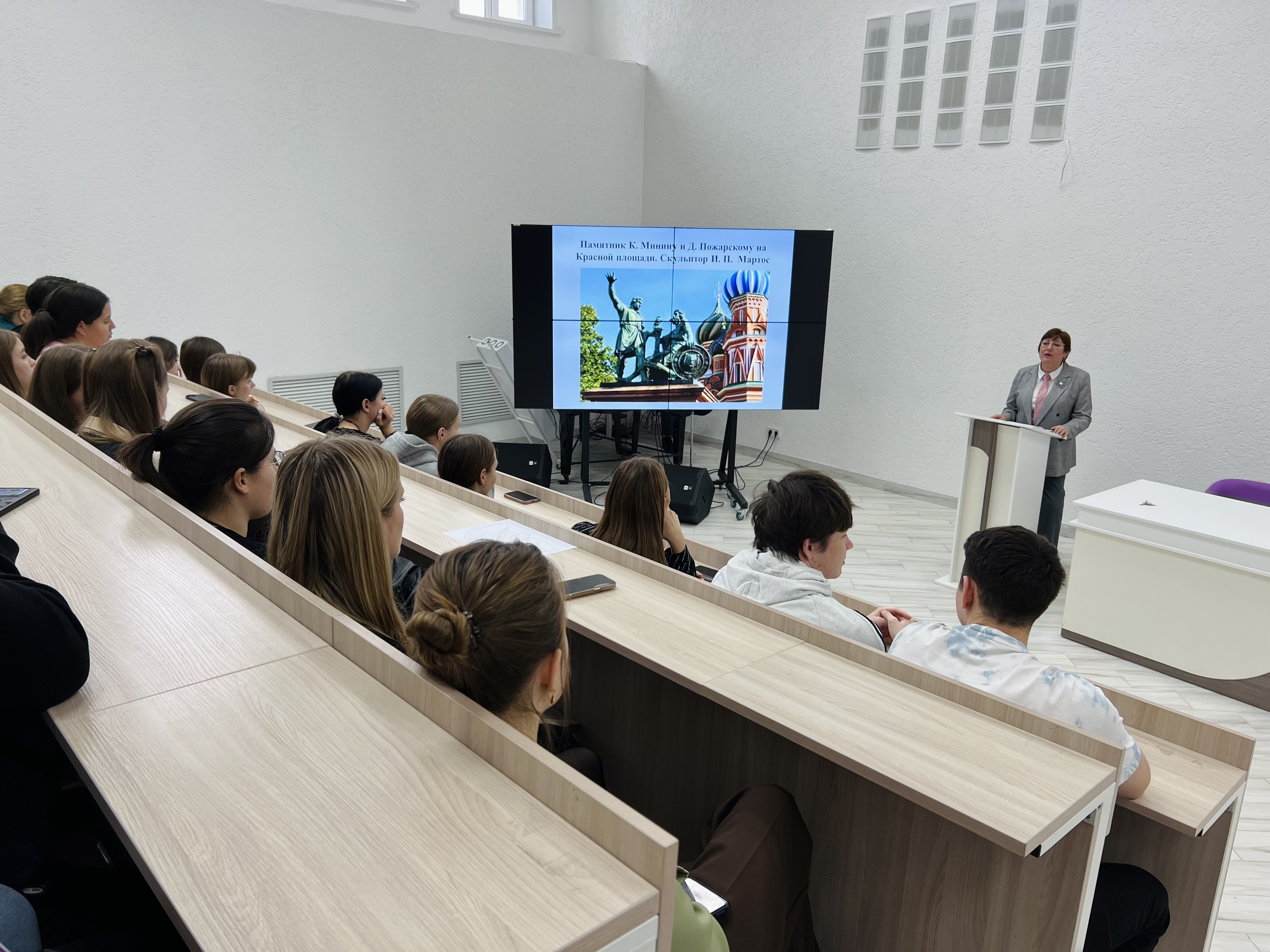 Перед многочисленной аудиторией выступила кандидат исторических наук, доцент Римма Николаевна Каукина. С первых минут лекции ей удалось не только объяснить глубокий смысл и историческое значение наступающего праздника, но и погрузить слушателей в одну из самых драматичных эпох отечественной истории.