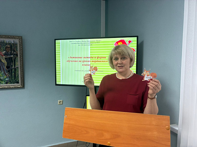 Своим уникальным опытом внедрения активных методов обучения мокшанскому языку поделилась Е. Н. Сандина, учитель МОУ «Центр образования “Тавла” – Средняя общеобразовательная школа № 17» г. Саранска. Она продемонстрировала эффективные приёмы вовлечения детей в изучение родного языка.