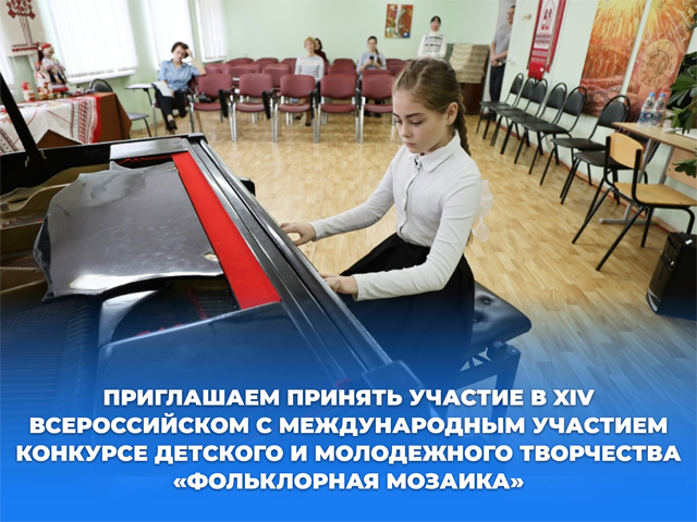 Подробная информация размещена в положении о XIV Всероссийском с международным участием конкурсе детского и молодежного творчества «Фольклорная мозаика», посвященном Году защитника Отечества и 80-летия Великой Победы.
