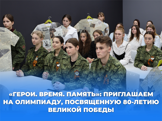 Факультет истории и права приглашает обучающихся 10-11 классов, студентов среднего профессионального и высшего образования к участию в Республиканской олимпиаде исторической славы «Герои. Время. Память», посвященной 80-летию Великой Победы.
