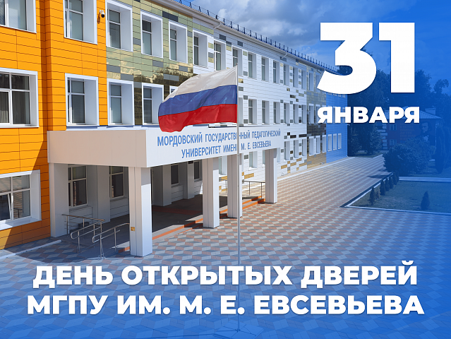 31 января в 11:00 Мордовский государственный педагогический университет имени М.Е. Евсевьева распахнет свои двери для будущих абитуриентов и всех желающих! Приглашаем вас на День открытых дверей, который пройдет в Доме знаний.