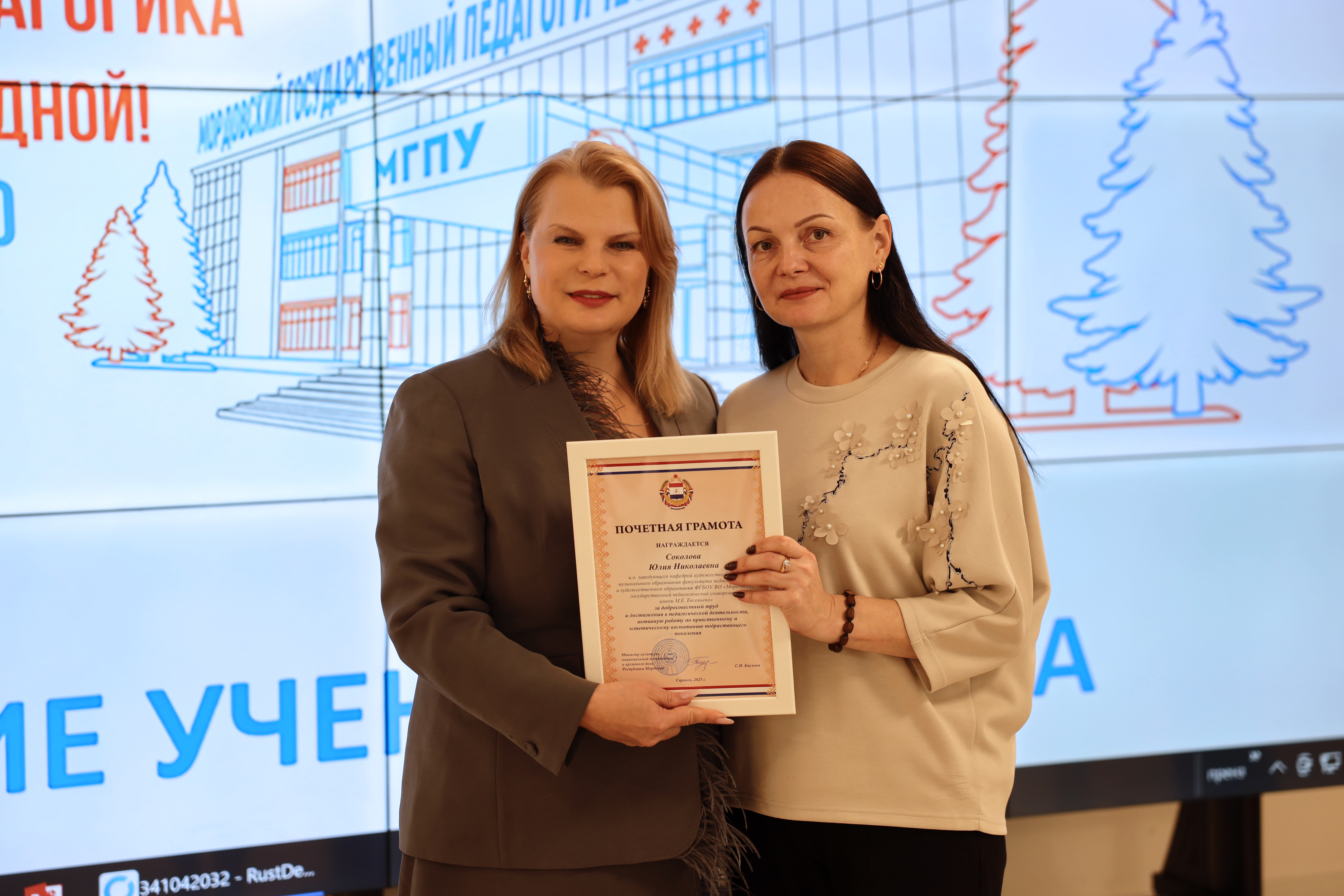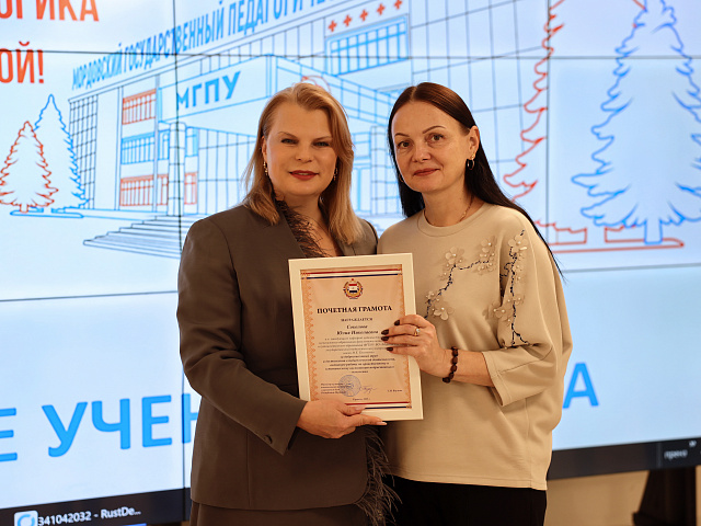 Также, в связи с юбилеем, за многолетний добросовестный труд, профессиональные достижения и значительный вклад в развитие МГПУ им. М. Е. Евсевьева грамотой университета была награждена Земляченко Людмила Викторовна.
