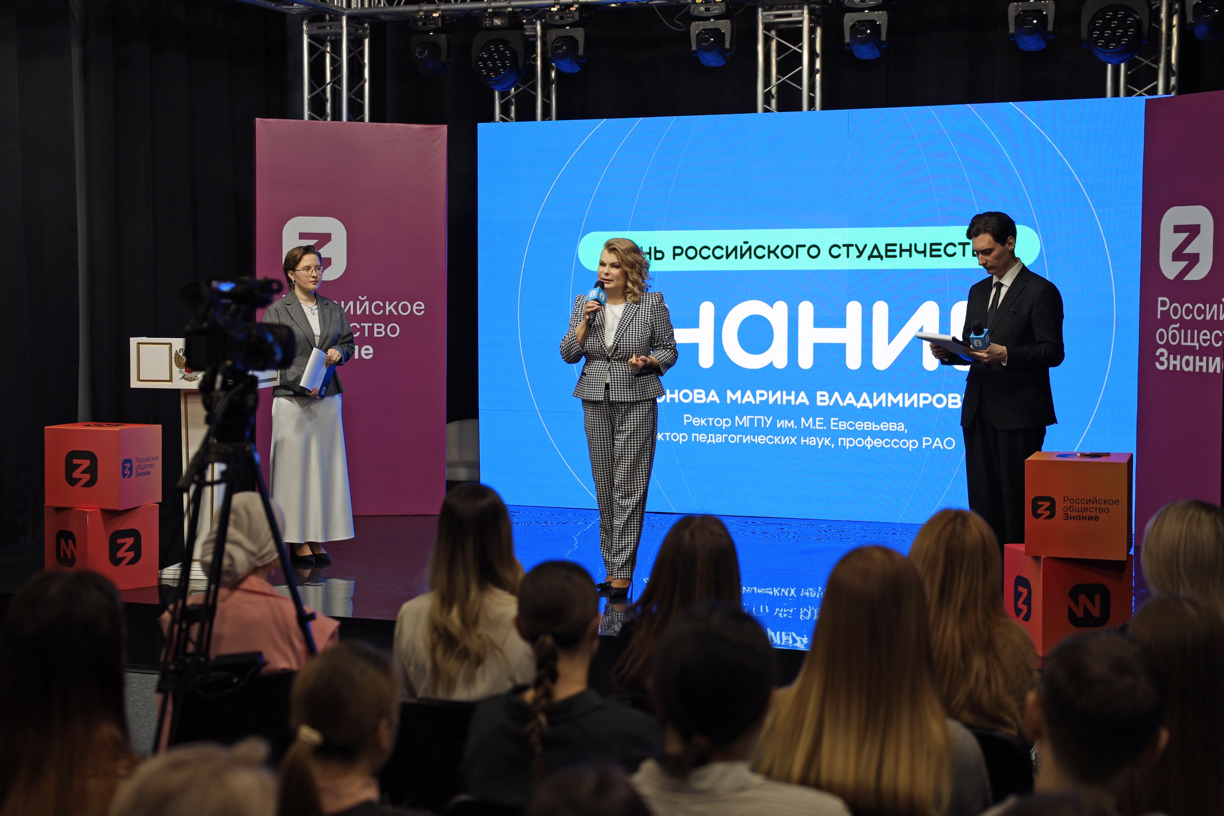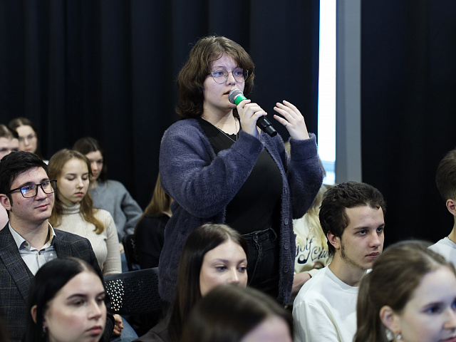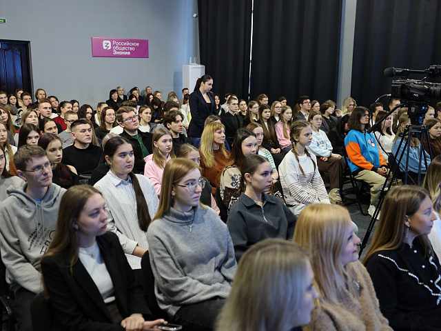 В рамках праздничных мероприятий, посвященных Дню российского студенчества, на площадке «Дома Знаний» Российского общества «Знание» состоялась встреча-диалог студенческого сообщества вуза с Полиной Никоновой, выпускницей физико-математического факультета 2024 года и победителем телепроекта «Классная тема!».