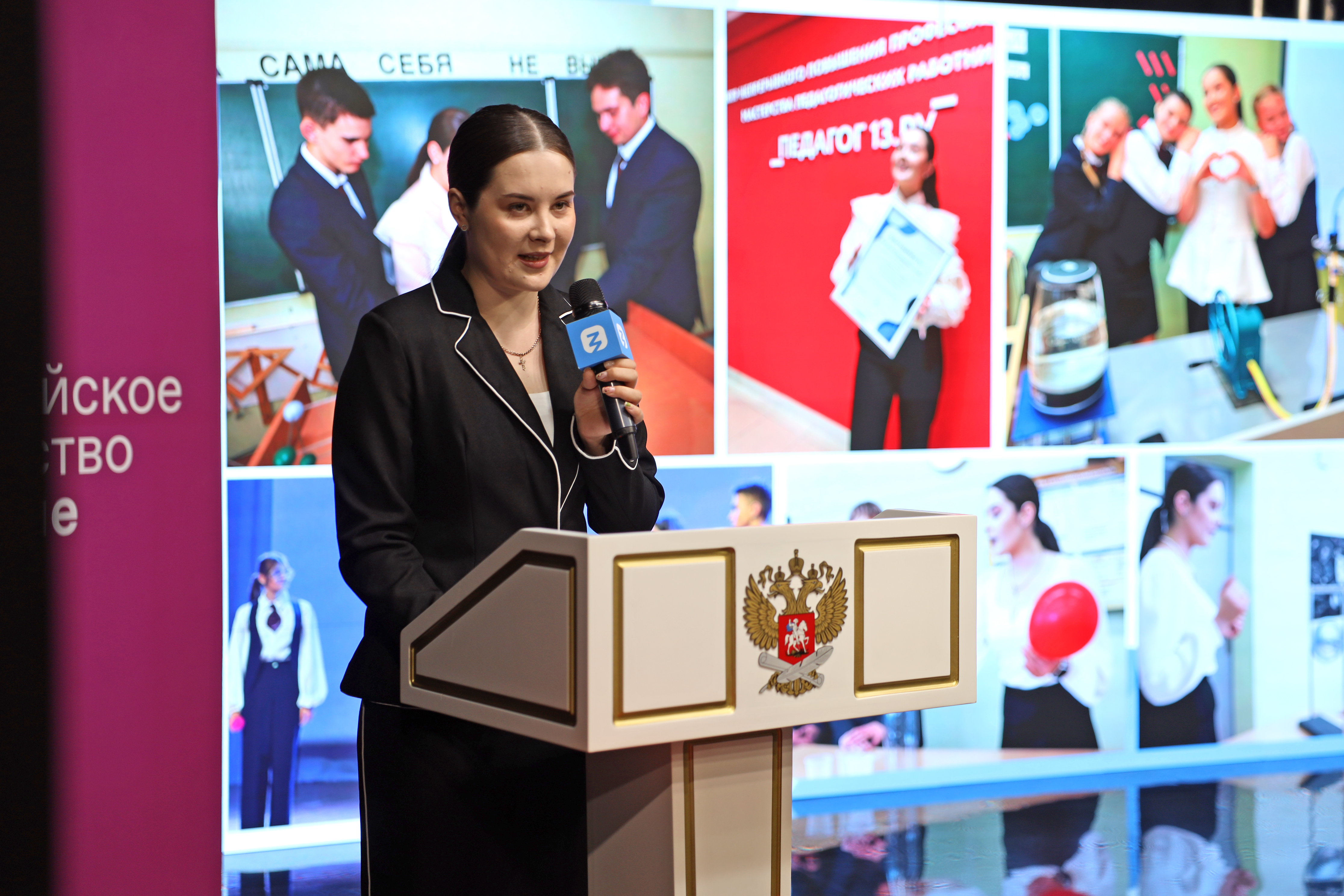 Полина Никонова поделилась с собравшимися своим опытом участия в проекте «Классная тема!», рассказала о своей работе в школе, о трудностях и радостях профессии учителя, а также дала ценные советы будущим педагогам. В своем выступлении она подчеркнула особую роль современных методов обучения, включая детские технопарки, школьные кванториумы и инженерные школы.
