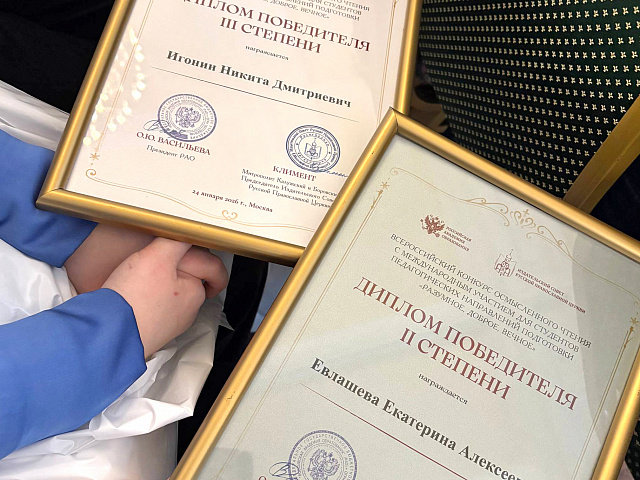 В День российского студенчества, 25 января, в Москве, в стенах исторического Дома Пашкова состоялась торжественная церемония награждения победителей и призеров II Всероссийского конкурса осмысленного чтения для студентов педагогических направлений подготовки с международным участием «Разумное, доброе, вечное». Двое студентов филологического факультета Мордовского государственного педагогического университета имени М. Е. Евсевьева стали лауреатами престижного конкурса.