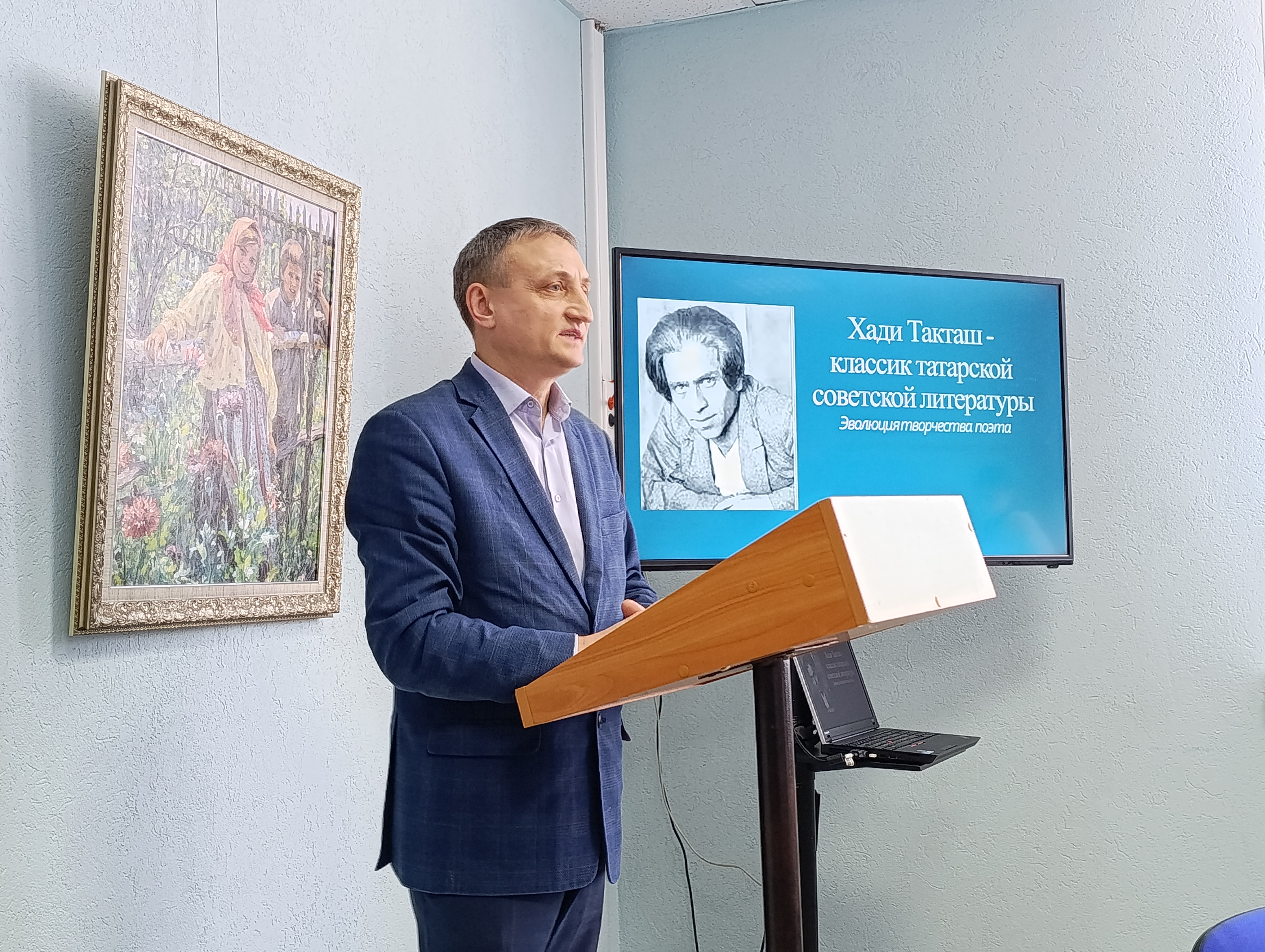 С докладом «Хади Такташ – классик татарской советской литературы» выступил доцент кафедры родного языка и литературы М. М. Акашкин. Он отметил, что произведения поэта занимают особое место в литературе XX века, отражая ключевые события эпохи и культурные преобразования в татарском обществе.