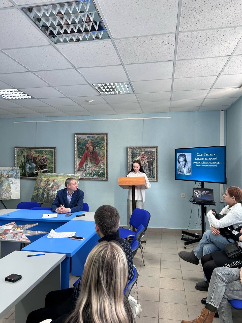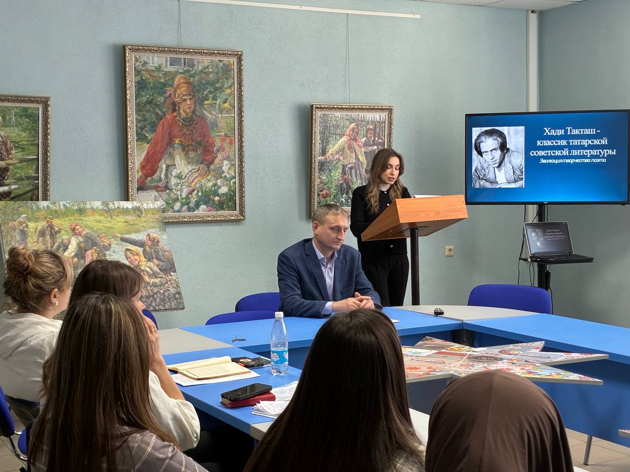 Активное участие в работе круглого стола приняли студенты. Юлия Азизова (5 курс, очное отделение) проанализировала художественное своеобразие ранней поэзии Такташа, показав его путь от романтика к реалисту. Лиана Гаврилова (3 курс, заочное отделение) в докладе «Незнакомый нам Такташ» рассказала о малоизвестных фактах биографии поэта.