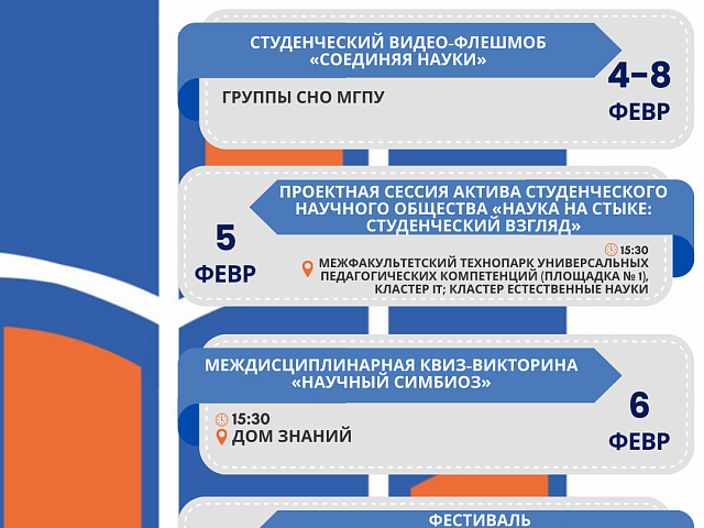 С 4 по 8 февраля предлагаем поддержать Студенческое научное общество МГПУ и присоединиться к видео-флешмобу «Соединяя науки» в социальных сетях.