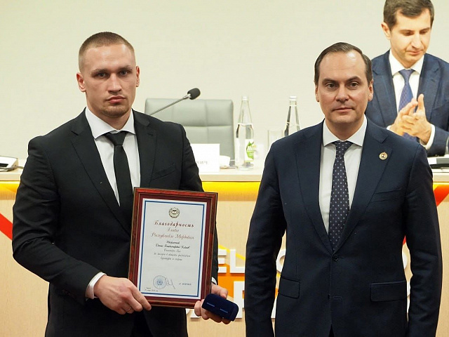 На стадионе «Мордовия Арена» в рамках заседания коллегии Министерства спорта студенту факультета физической культуры Денису Козлову была вручена благодарность «За заслуги в области физической культуры и спорта». Эта награда — признание его активной гражданской позиции, вклада в развитие спортивной жизни университета и региона, а также стремления к профессиональному росту. Денис — достойный пример для всех студентов!