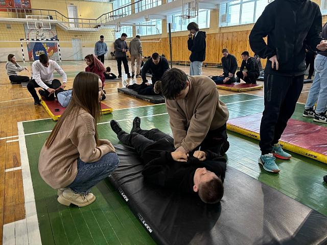 На факультете физической культуры будущие педагоги отрабатывали навыки тактической медицины. На мастер-классе студенты учились останавливать кровотечение, проводить сердечно-лёгочную реанимацию и безопасно эвакуировать пострадавшего.