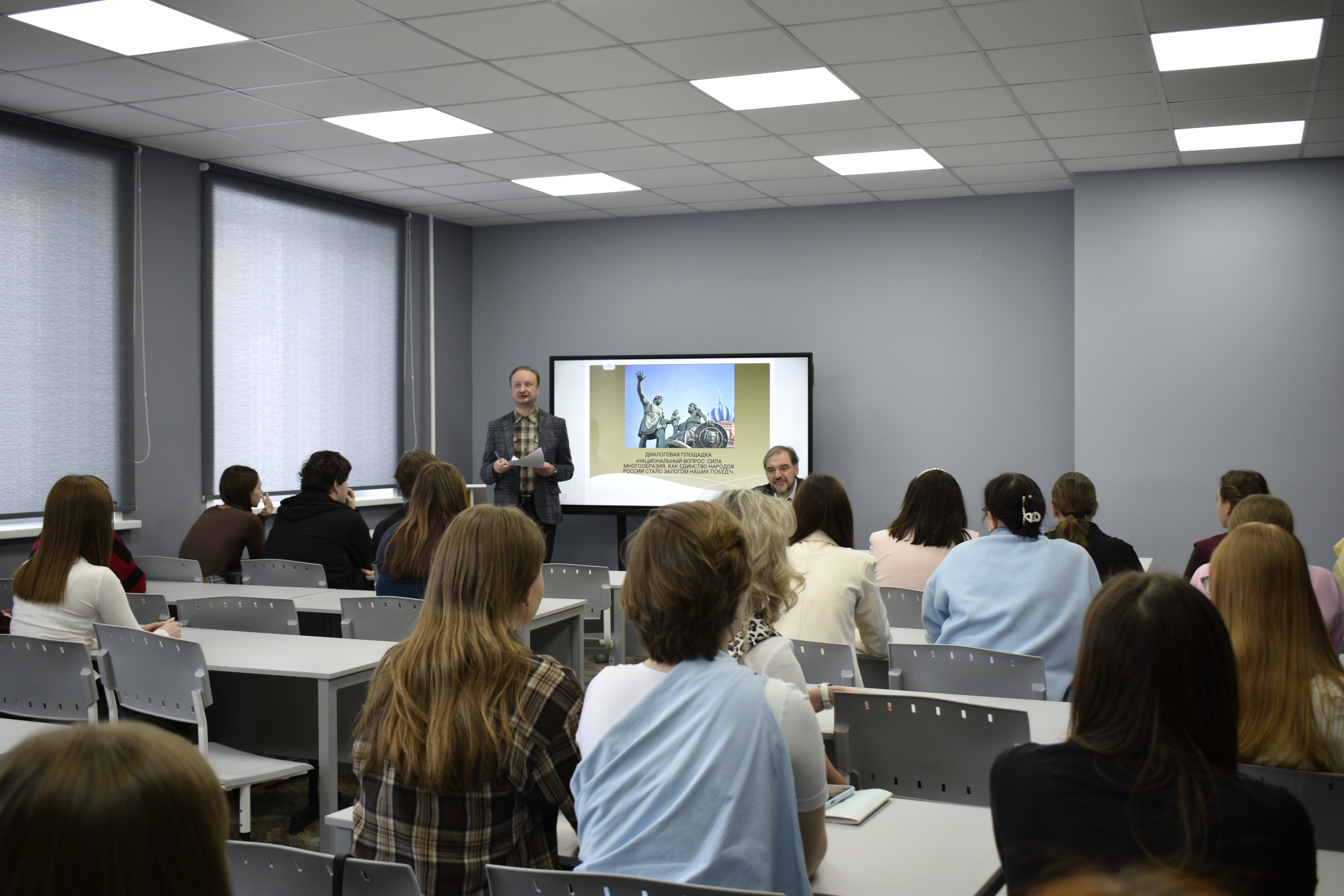 Участники дискуссии — будущие историки, юристы, педагоги — активно включались в разговор, приводя яркие исторические параллели. От Смутного времени и Отечественной войны 1812 года до Великой Отечественной и новейшей истории — все ключевые победы и свершения России были возможны лишь при консолидации всех её народов вокруг защиты общего дома и базовых ценностей.