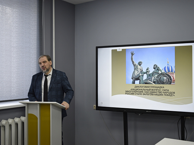 На факультете истории и права состоялась открытая диалоговая площадка «Национальный вопрос: сила многообразия. Как единство народов России стало залогом наших побед?». Встреча, приуроченная к Году единства народов России–2026, объединила студентов, преподавателей и ученых в живом, заинтересованном разговоре о прошлом, настоящем и будущем межнационального согласия в стране.