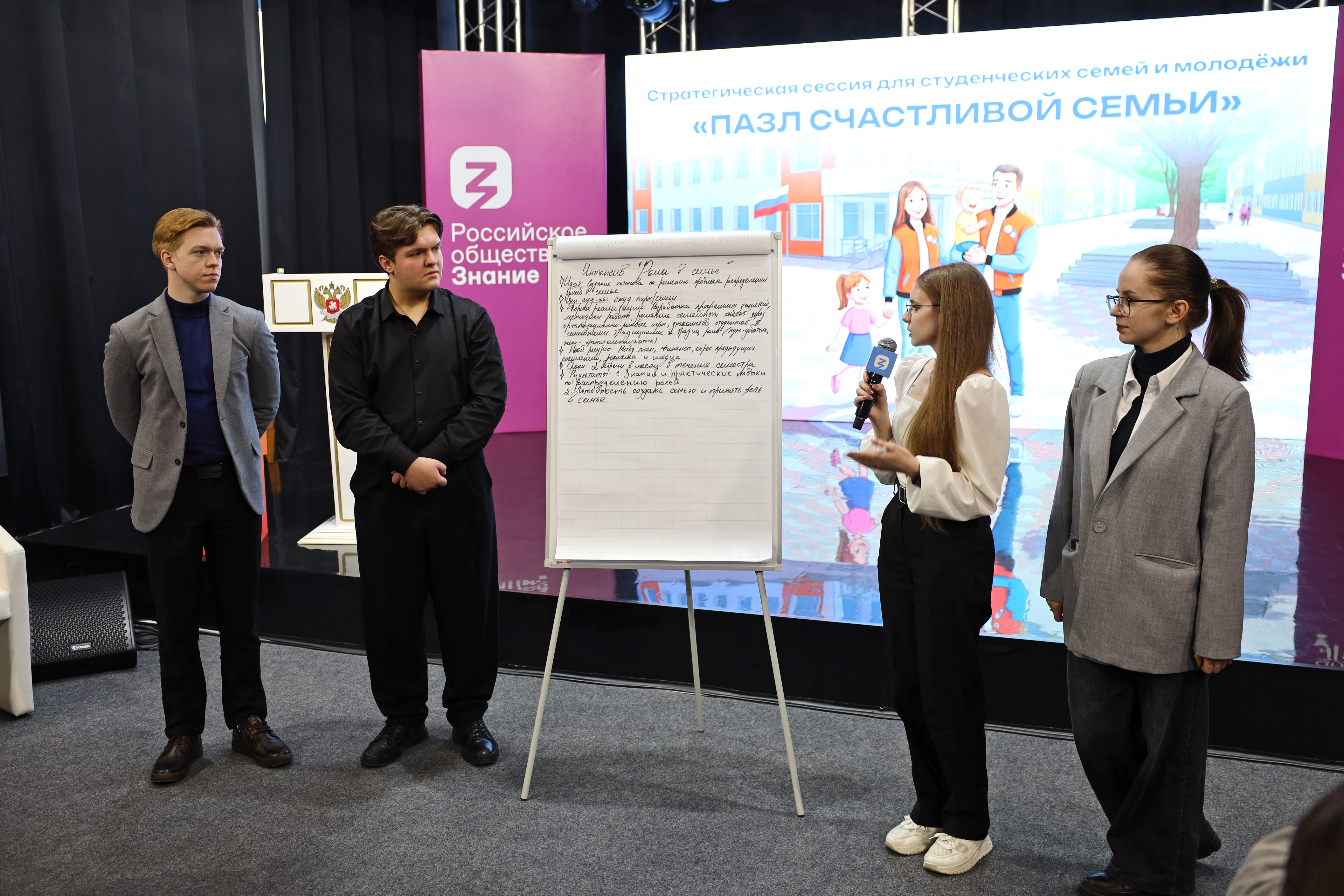 В Мордовском государственном педагогическом университете прошла живая стратегическая сессия, где главными экспертами выступили сами студенты, молодые родители и те, кто только задумывается о создании семьи. Формат «Мирового кафе» превратил зал в пространство равного диалога, где за каждым столом кипела работа: честно обсуждали трудности, искали решения и буквально набрасывали проекты будущего.