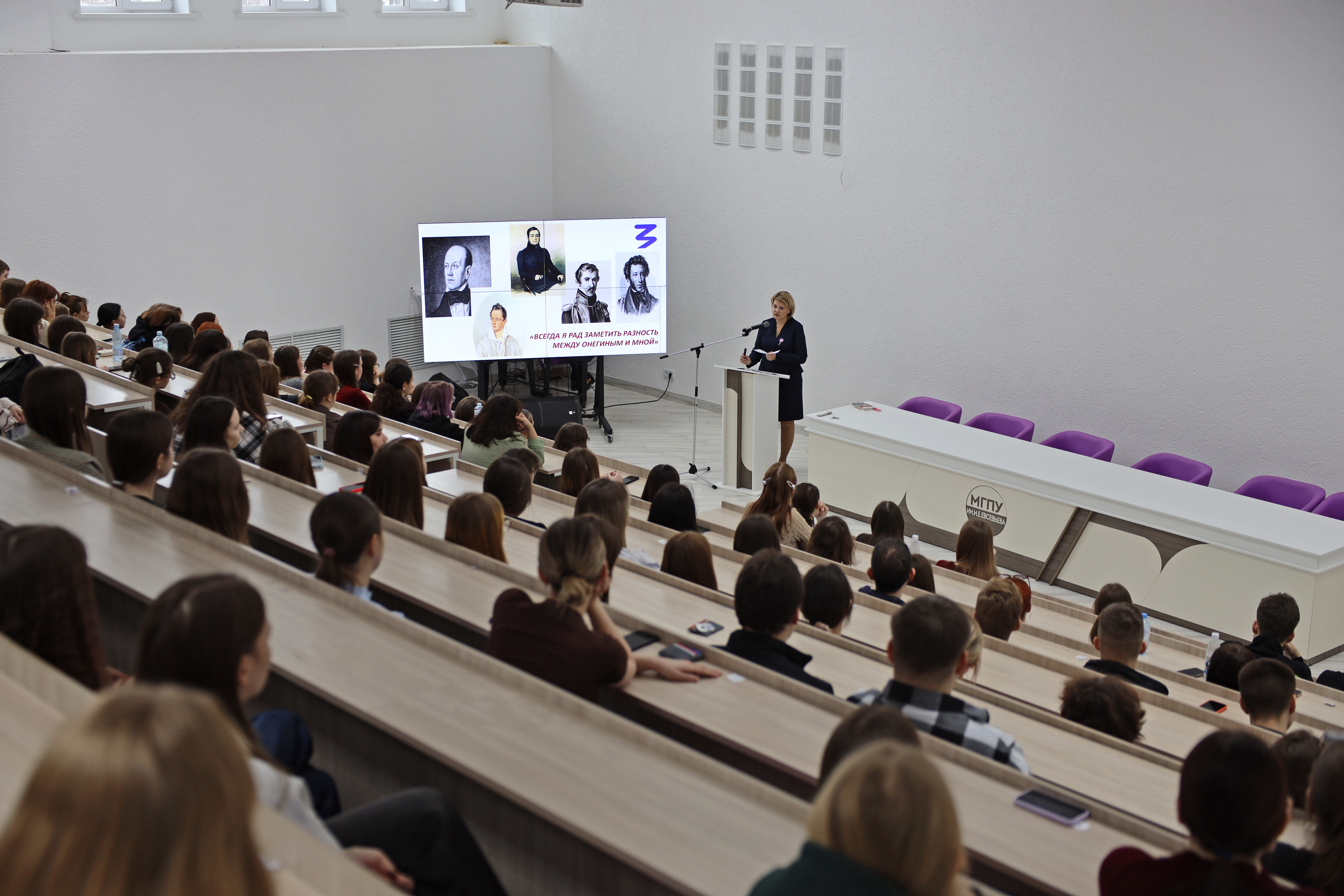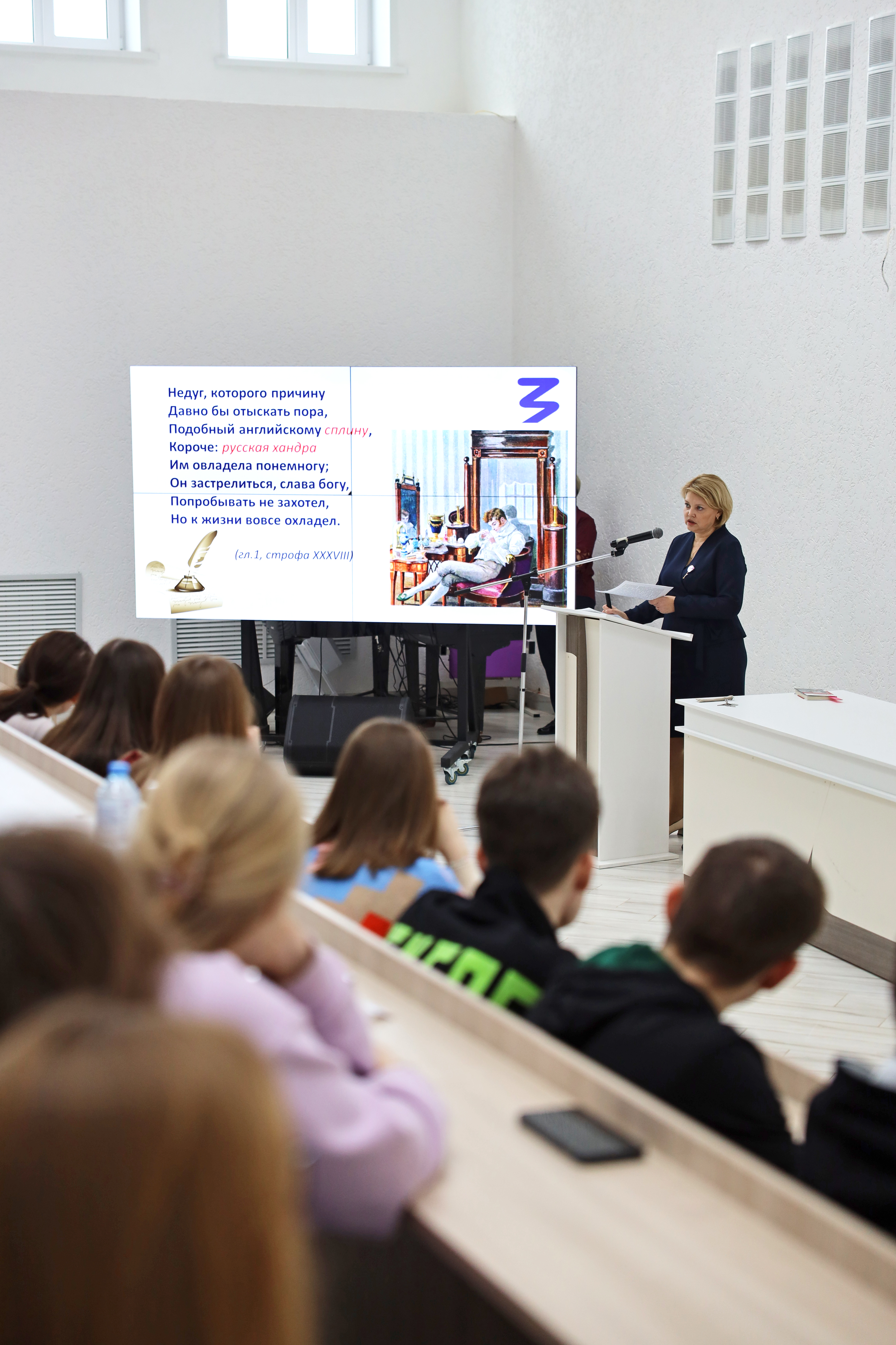 Главным спикером стала доктор филологических наук, профессор кафедры русского языка, литературы и методик обучения О. И. Бирюкова с выступлением «"Евгений Онегин" А. С. Пушкина: тайны, которые вы не разгадали». Заявленная тема сразу привлекла внимание аудитории, превратив лекцию в захватывающий филологический квест. Ольга Ивановна не просто предложила слушателям еще раз вспомнить знакомые сюжетные линии романа, а пригласила их в увлекательное расследование: вместе с лектором студенты пытались разгадать тайны характера Онегина, скрытые смыслы «онегинской строфы» и неоднозначность финала пушкинского текста. Атмосфера интеллектуального поиска и неподдельный интерес не покидали зал на протяжении всего выступления.