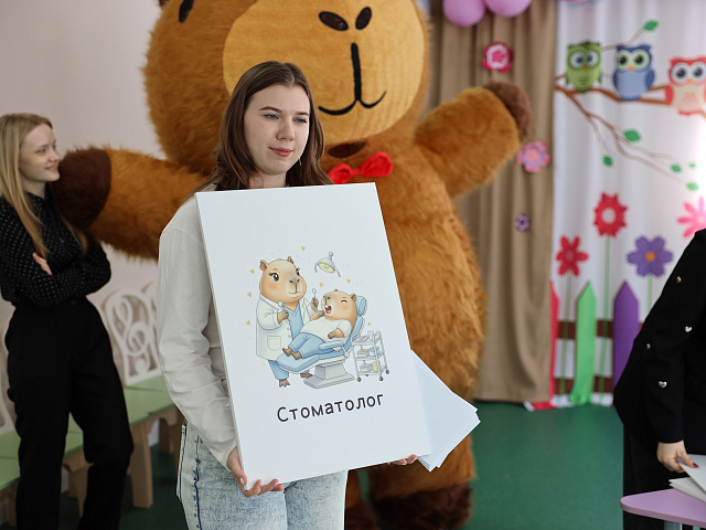 11 марта 2026 года, в рамках реализации дорожной карты, посвященному Году дошкольного образования, студенты факультета педагогического и художественного образования на площадке образовательно-воспитательного кластера, созданного при поддержке Министерства просвещения России провели тематические занятия для детей в возрасте от 4 до 8 лет. Главная героиня проекта - симпатичная и крайне любознательная Капибара по имени Хочуха становится проводником для юных воспитанников в мир профессий, погружаясь вместе с ними в увлекательные приключения и осваивая разнообразные специализации. Благодаря игровому формату дети лучше понимают профессиональное разнообразие окружающего мира, открывают новые горизонты собственных возможностей и учатся мечтать о своем будущем деле с интересом и удовольствием.