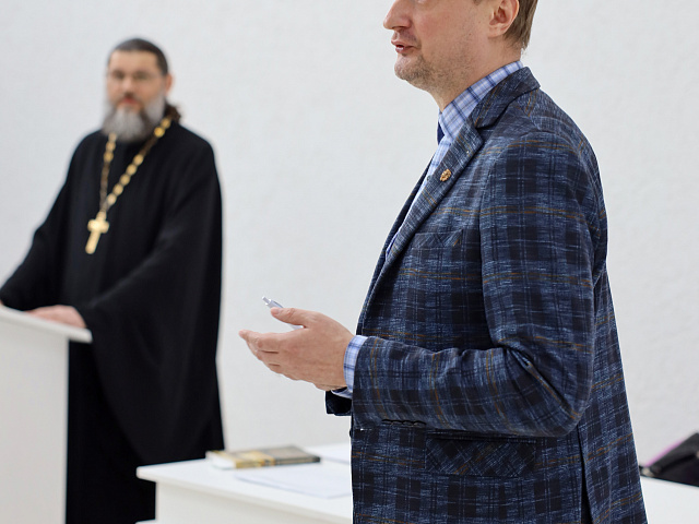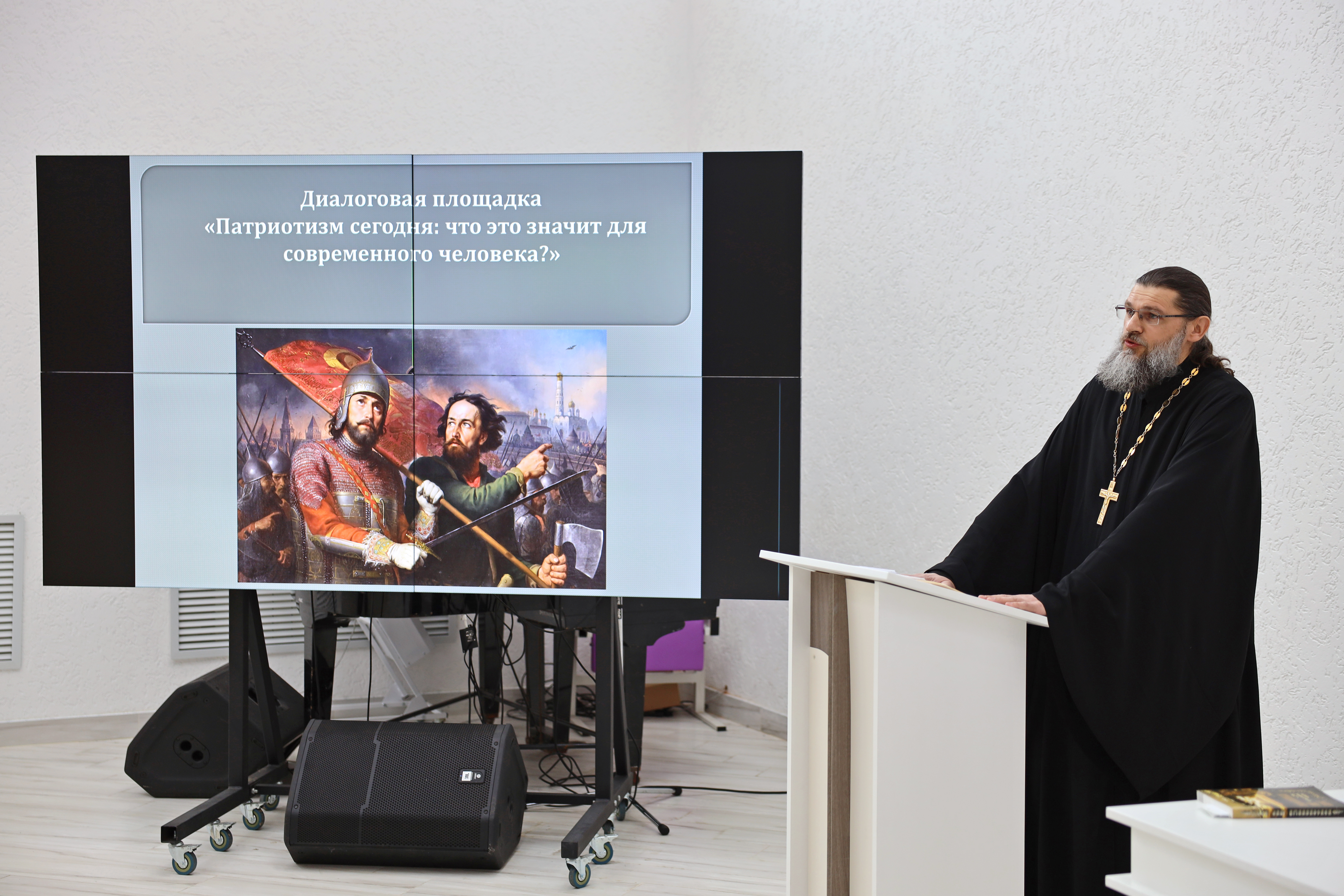 Особый тон беседе задало участие иерея Георгия Николаевича Горюнова. Представитель Русской православной церкви обратился к духовным истокам патриотизма, подчеркнув, что для верующего человека служение Отечеству неразрывно связано с любовью к ближнему и нравственным долгом.