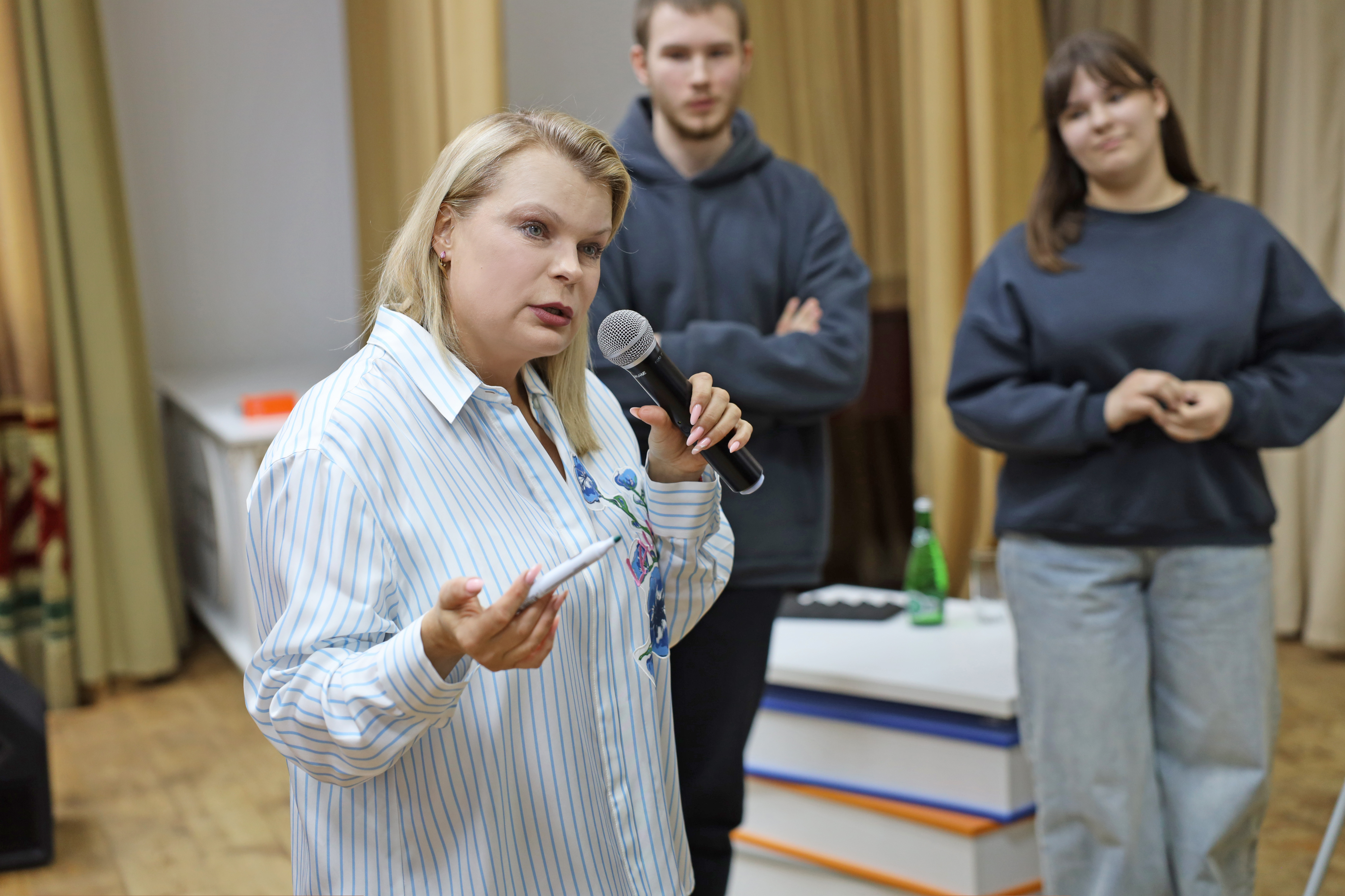 Марина Владимировна Антонова внимательно выслушала каждое выступление, задала уточняющие вопросы по предложенным концепциям и высоко оценила вовлеченность студентов в жизнь факультета.