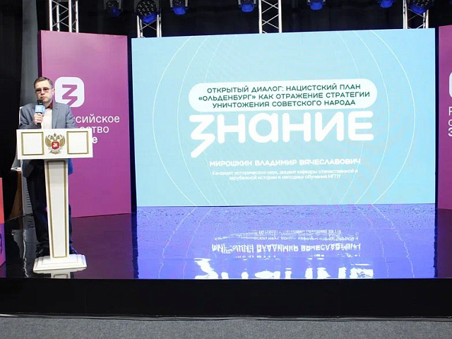 Открыл программу В. В. Мирошкин, кандидат исторических наук, доцент кафедры отечественной и зарубежной истории и методики обучения. Он представил слушателям лекцию на тему: «Нацистский план «Ольденбург» как отражение стратегии уничтожения советского народа». В своем выступлении лектор подробно остановился на малоизвестном широкой аудитории экономическом аспекте геноцида. Вопреки распространенному представлению о хаотичности оккупационного режима, В. В. Мирошкин представил план «Ольденбург» (также известный как «Зеленая папка» Геринга) как стройную и циничную доктрину управления ресурсами захваченного СССР. На основе архивных документов он изложил, каким образом продовольственная политика вермахта и хозяйственных штабов была намеренно выстроена на принципе «избыточного и недостаточного потребления». Слушателям были представлены данные, демонстрирующие, что планирование голода для крупных городов, включая блокадный Ленинград, и изъятие продовольствия в сельской местности не являлись «издержками войны», а были прямым инструментом достижения цели – сокращения «лишнего славянского населения». Особый акцент в лекции был сделан на том, как экономический расчет смерти миллионов людей предшествовал непосредственным карательным акциям на местах, что позволяет рассматривать «Ольденбург» как фундамент всей политики геноцида на Востоке.