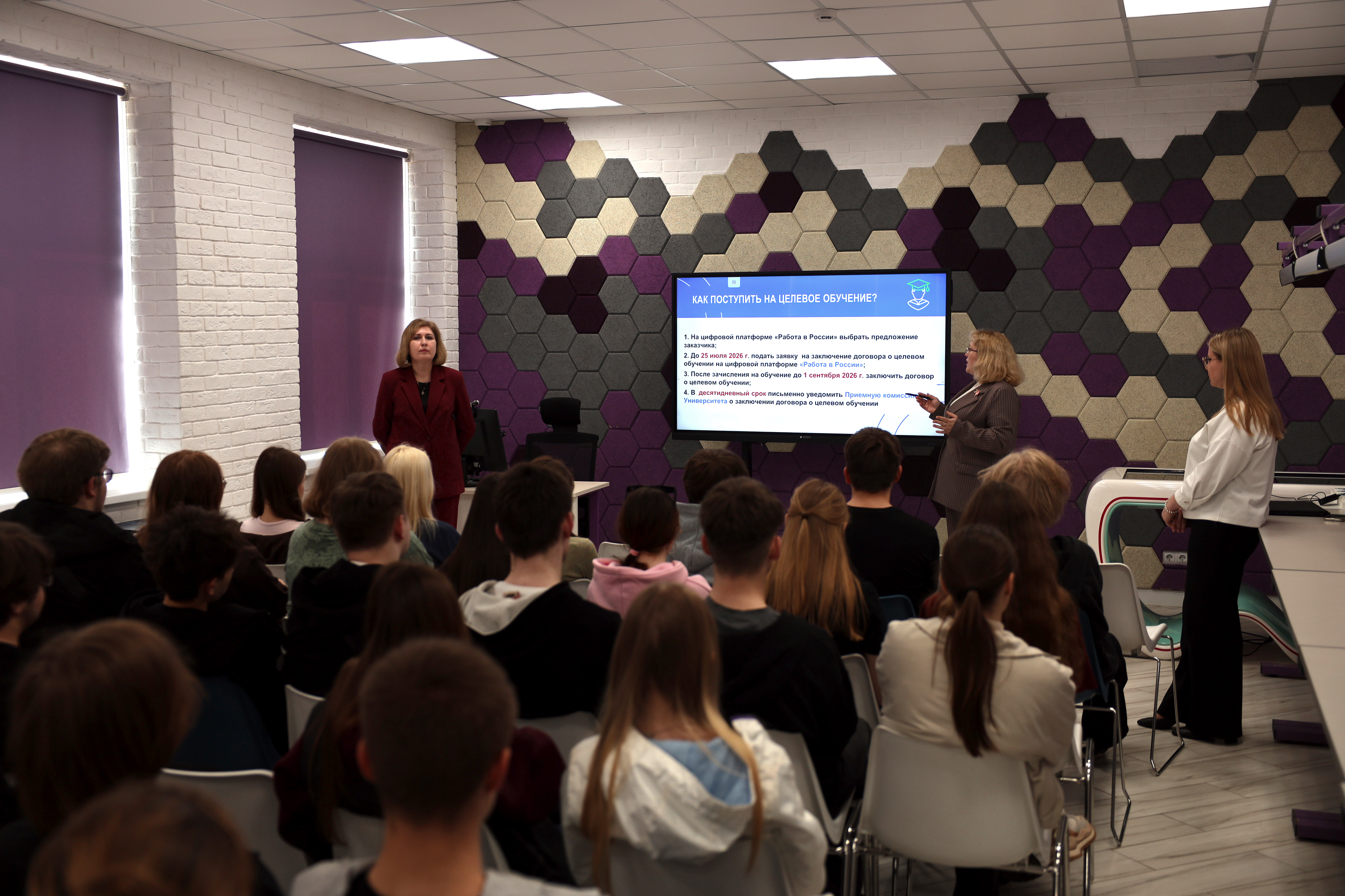 Для участников были организованы экскурсии по Технопарку универсальных педагогических компетенций, кванториуму, учебно-практическому полигону «Защита Родины», спортивным объектам. Абитуриенты имели возможность познакомиться с учебными аудиториями и современными лабораториями, что наглядно продемонстрировало передовые образовательные решения, направленные на подготовку студентов к успешной профессиональной деятельности.