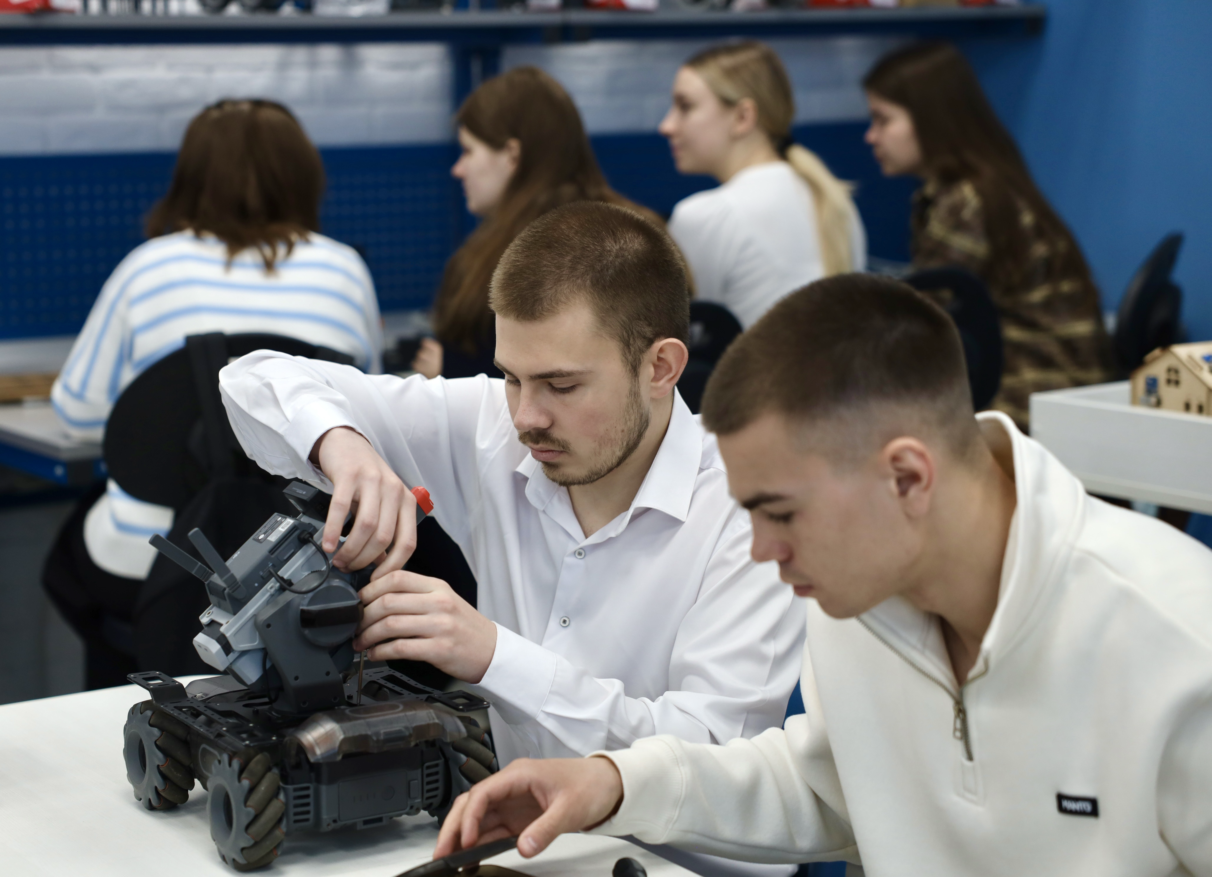 Отдельное внимание было уделено учебно-практическому полигону «Защита Родины». Здесь студенты продемонстрировали свои умения управлением беспилотными летательными аппаратами, сборки и разборки автоматического оружия, а также меткой стрельбы. В кабинете первой медицинской помощи ребята оттачивали навыки спасения человека в экстренных ситуациях.