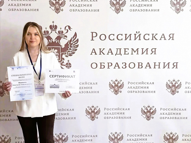 23 апреля 2026 года в Москве прошёл очный финальный этап VI Всероссийского конкурса «Педагогический дебют учителя-дефектолога». Специальный приз жюри конкурса и сертификат на стажировку в Российской академии образования получила Меняшева Анастасия Александровна, магистрантка 2 курса направления подготовки Специальное (дефектологическое) образование профиля Проектирование программ логопедической помощи факультета психологии и дефектологии.
