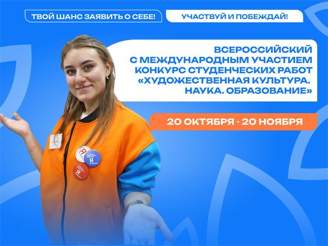 Продолжается регистрация на Всероссийскую студенческую научно-практическую конференцию «Учитель нового века: взгляд молодого исследователя», которая состоится 9 октября 2025 года. Для участия в Конференции необходимо до 25 сентября 2025 года пройти регистрацию по ссылке: https://forms.yandex.ru/cloud/68b0293350569011b2dd5238 Основные направления работы: – Инновационная деятельность современного педагога. – Восп...