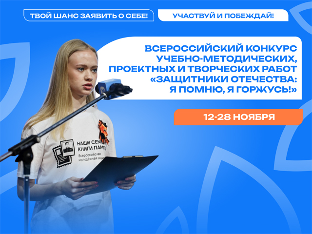 Мордовский государственный педагогический университет имени М. Е. Евсевьева, факультет педагогического и художественного образования, кафедра дошкольного и начального образования приглашают к участию во Всероссийском конкурсе учебно-методических, проектных и творческих работ среди воспитанников дошкольных образовательных организаций, учащихся начальной и основной школы, студентов СПО и ВУЗов «Защитники Отечества: я помню, я горжусь!»,...