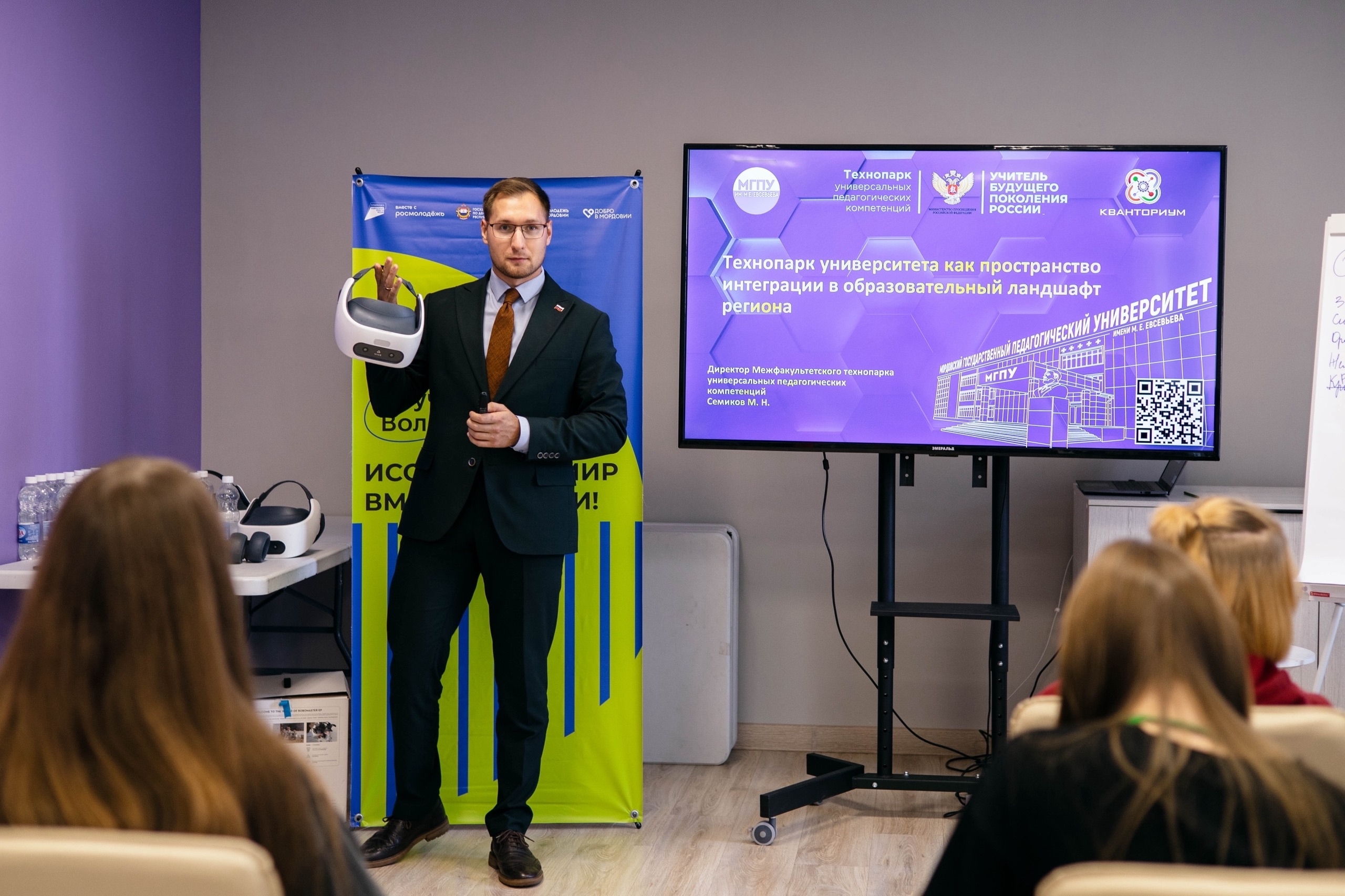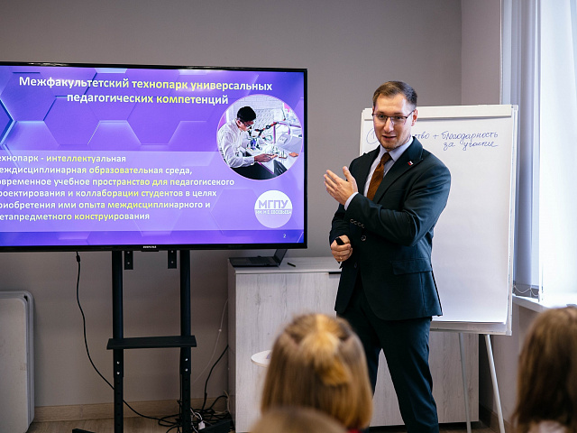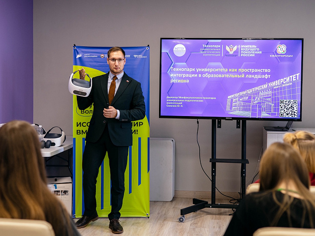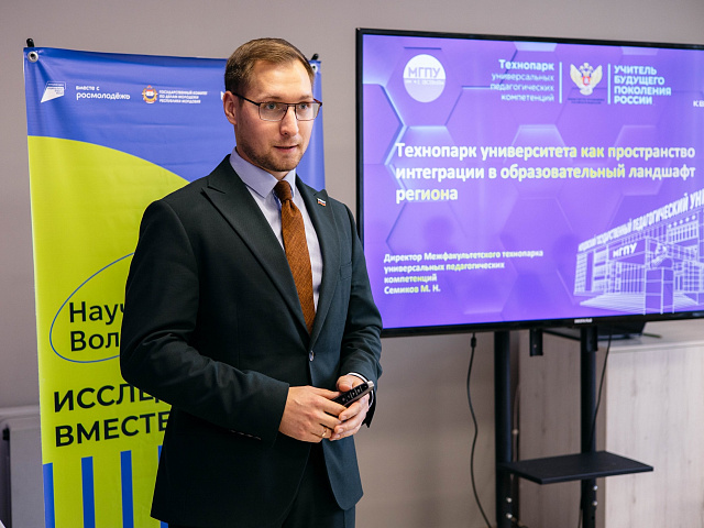Ключевым моментом мероприятия стала практическая сессия от Михаила Семикова, директора Межфакультетского технопарка универсальных педагогических компетенций МГПУ им. М.Е. Евсевьева. Он представил собравшимся ресурсную базу Межфакультетского технопарка и педагогического Кванториума, отметив их потенциал для реализации волонтерских проектов.