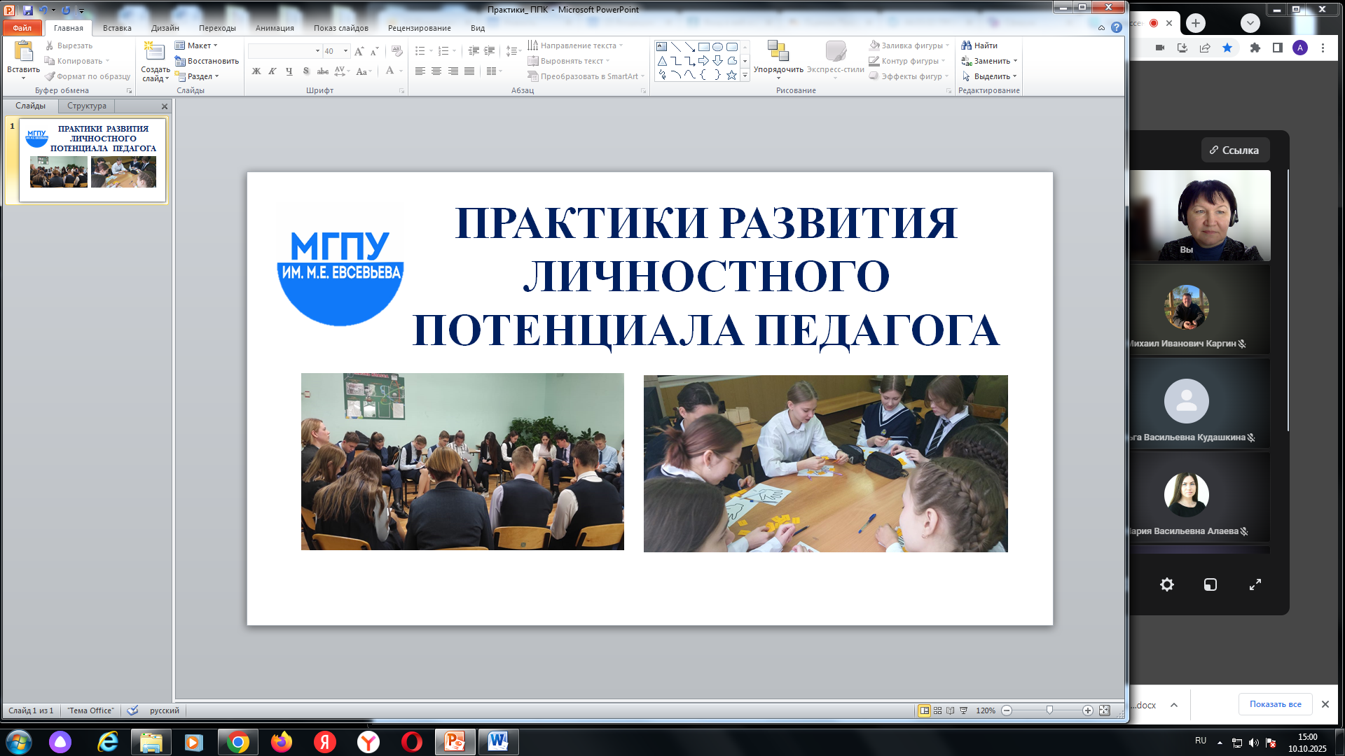 10 октября 2025 года в рамках совместной деятельности участников учебно-педагогического округа № 13 проведен психолого-педагогический марафон «Практики развития личностного потенциала педагога» для педагогов психолого-педагогических классов преподавателями кафедры психологии.