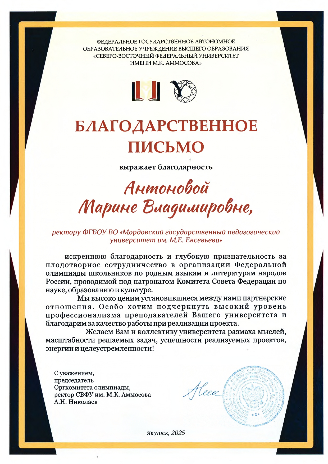 Благодарственное письмо